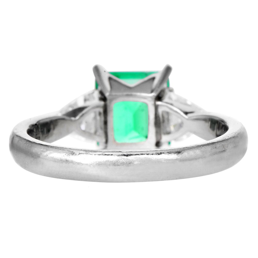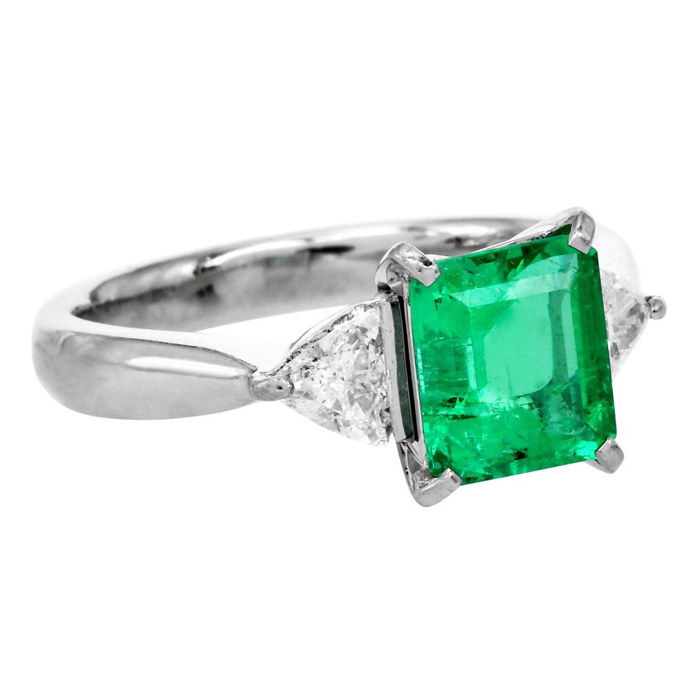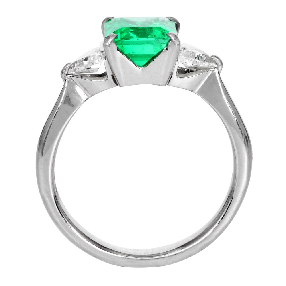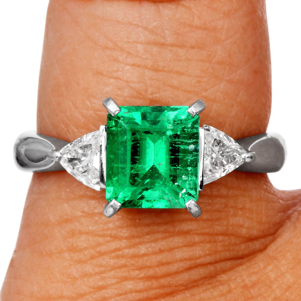 1.92 carats GIA Emerald Diamond Platinum Three Stone Ring