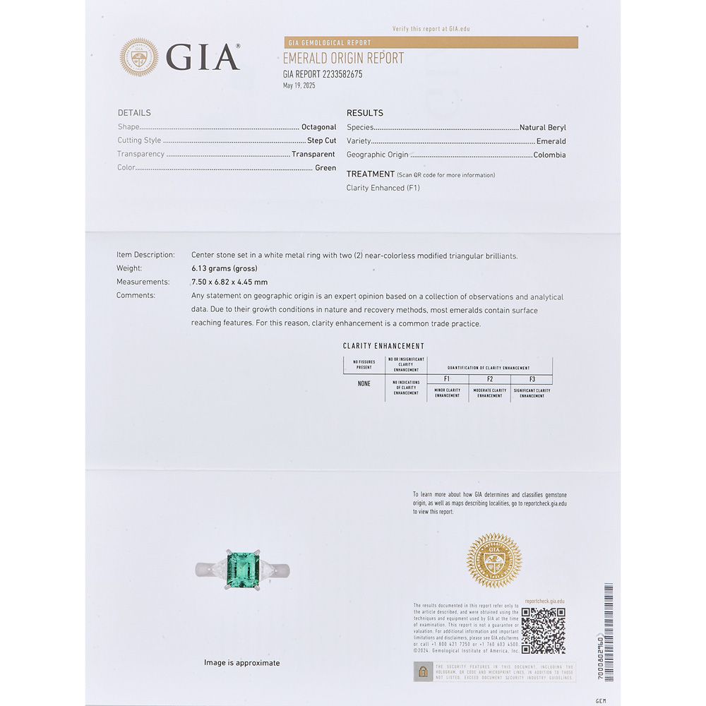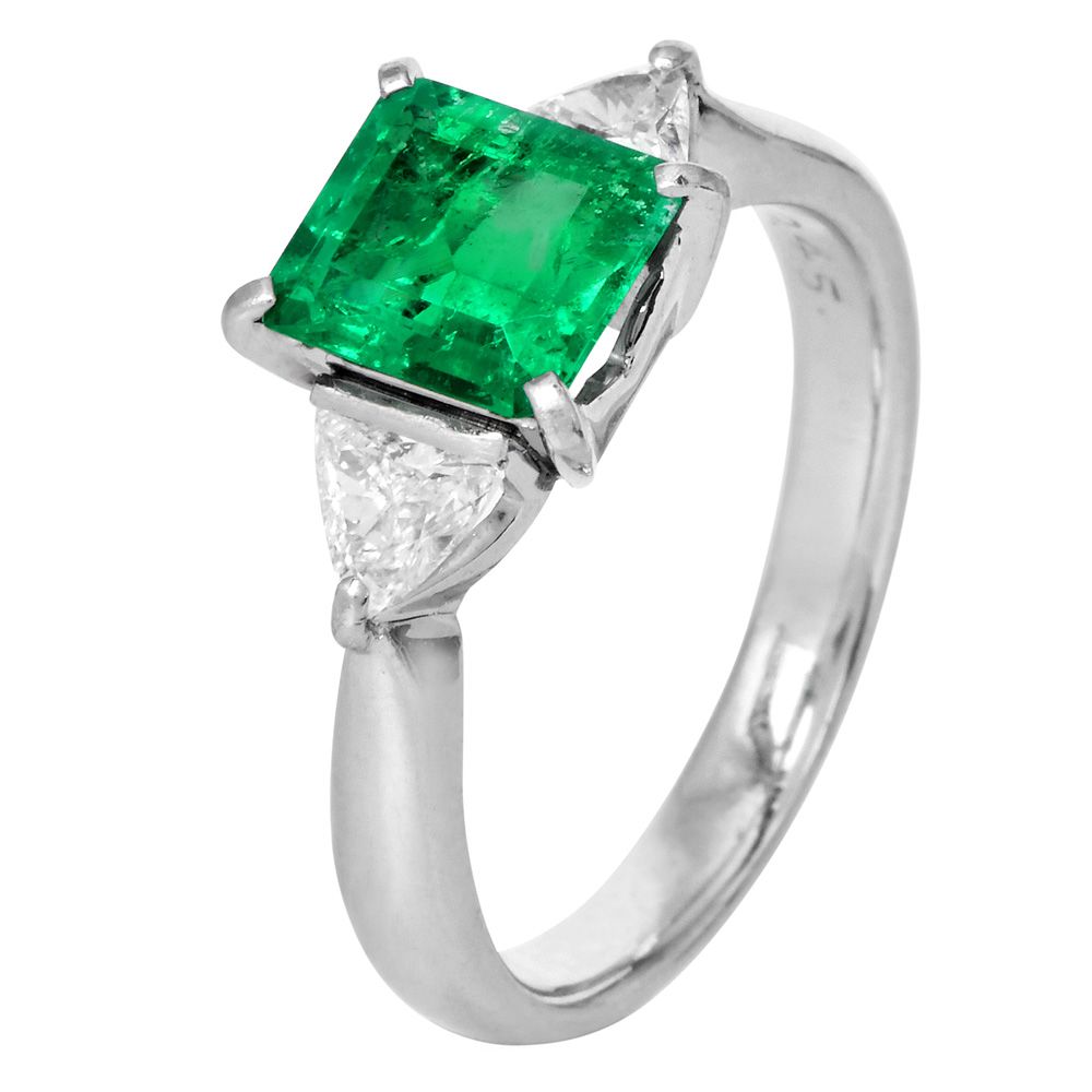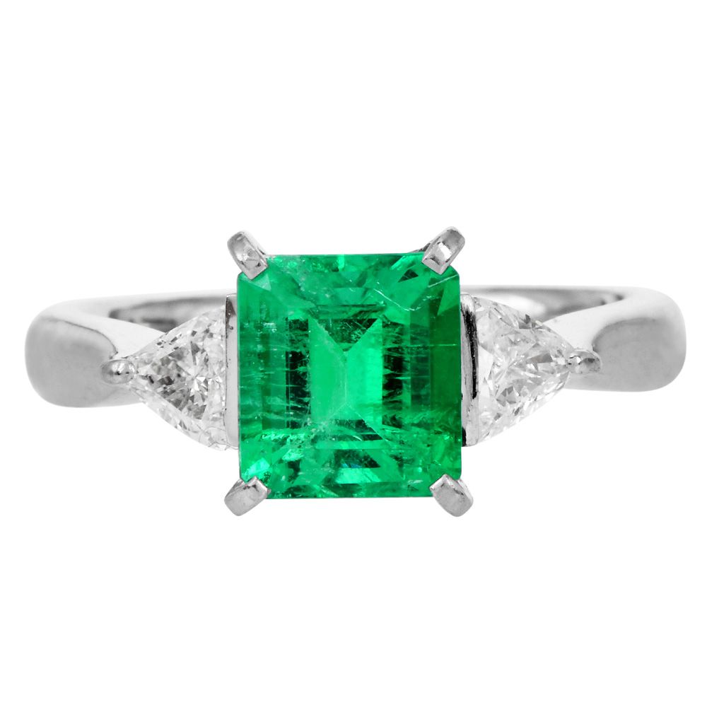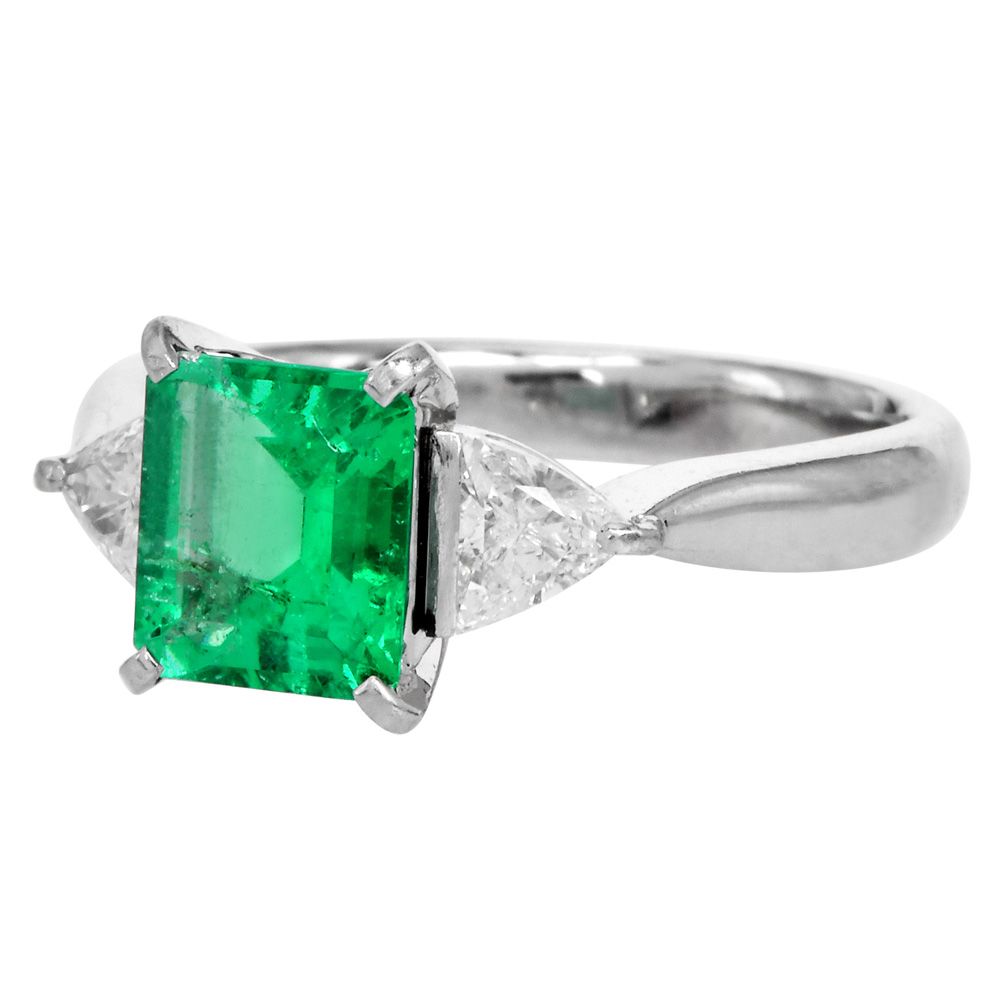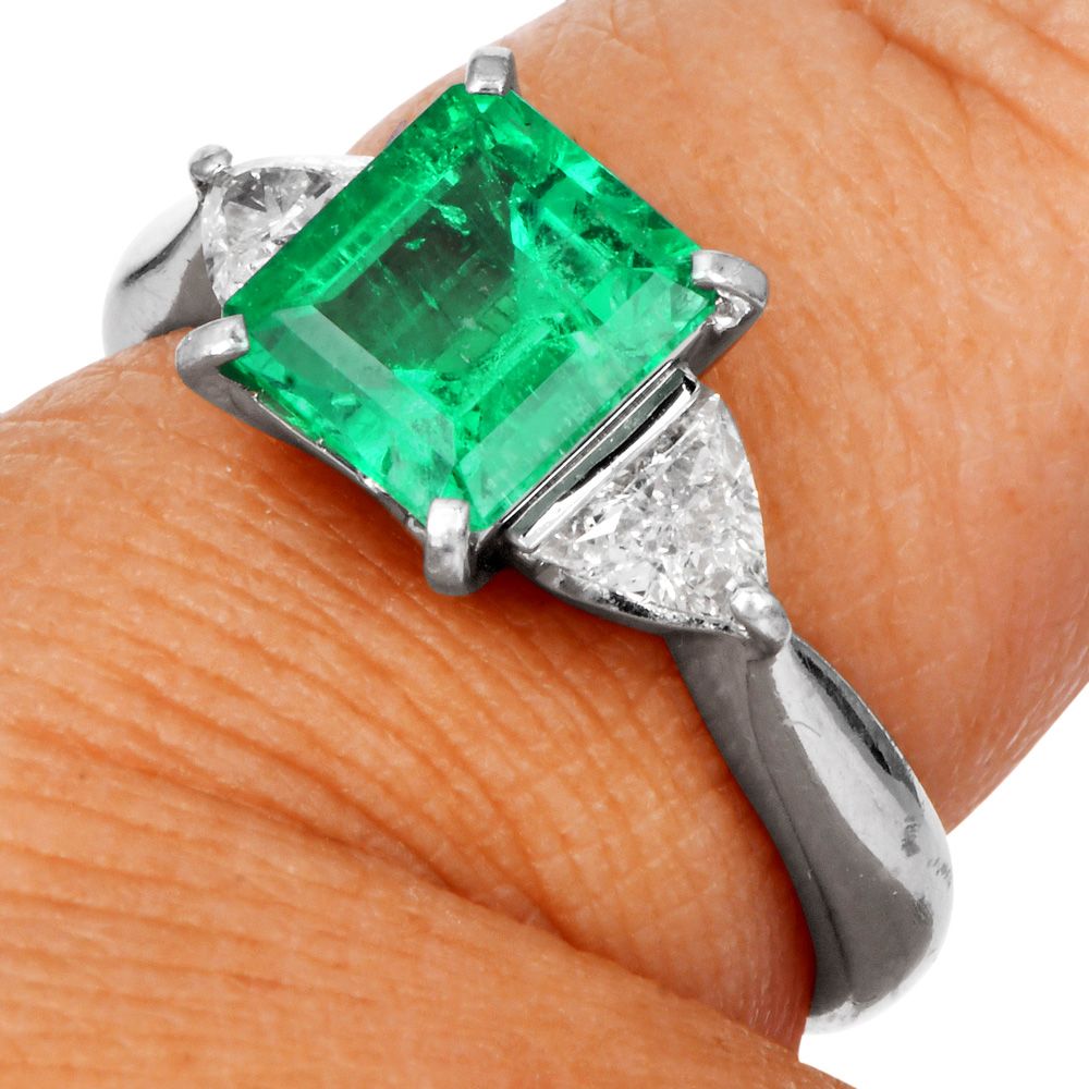 1.92 carats GIA Emerald Diamond Platinum Three Stone Ring