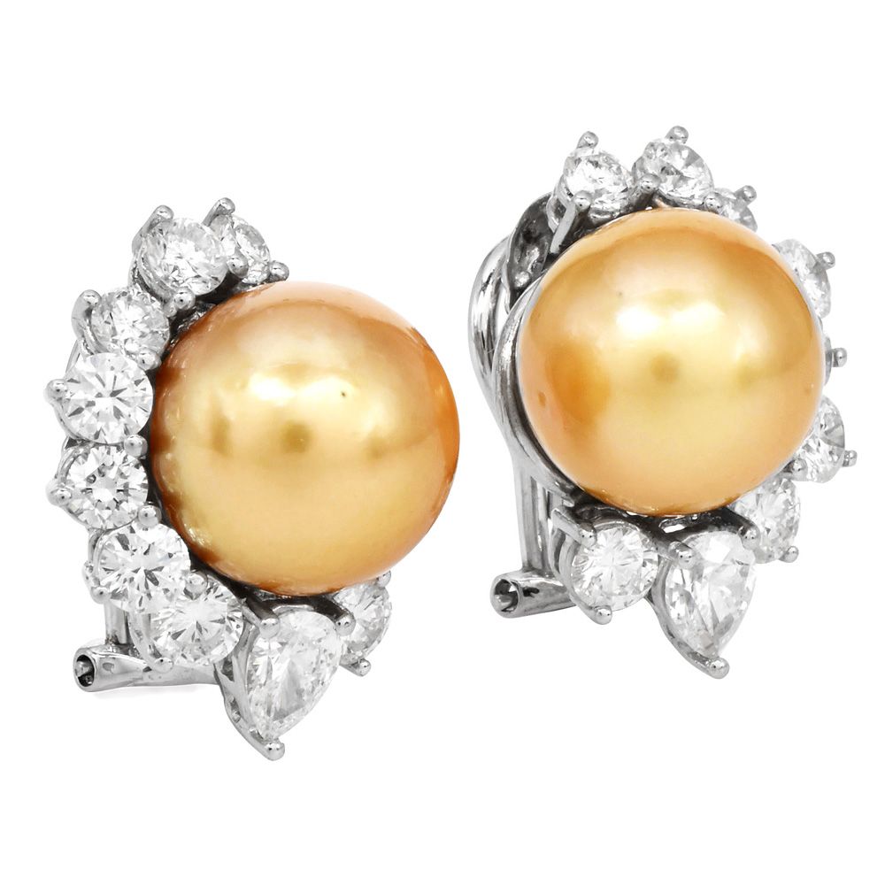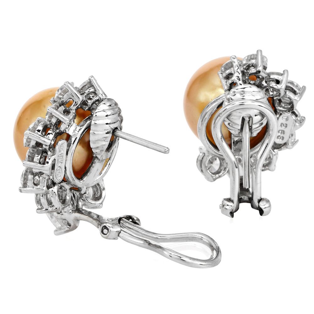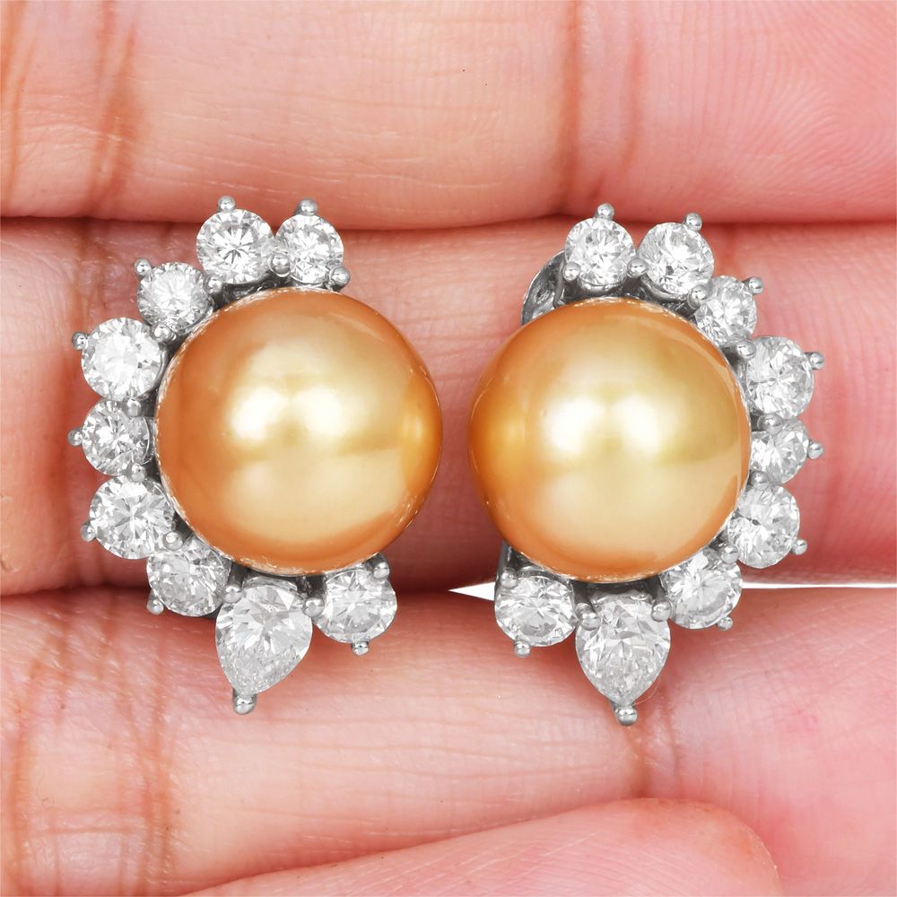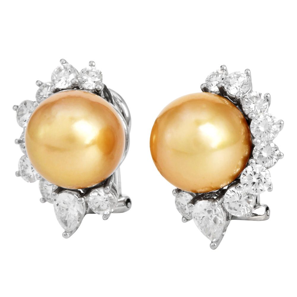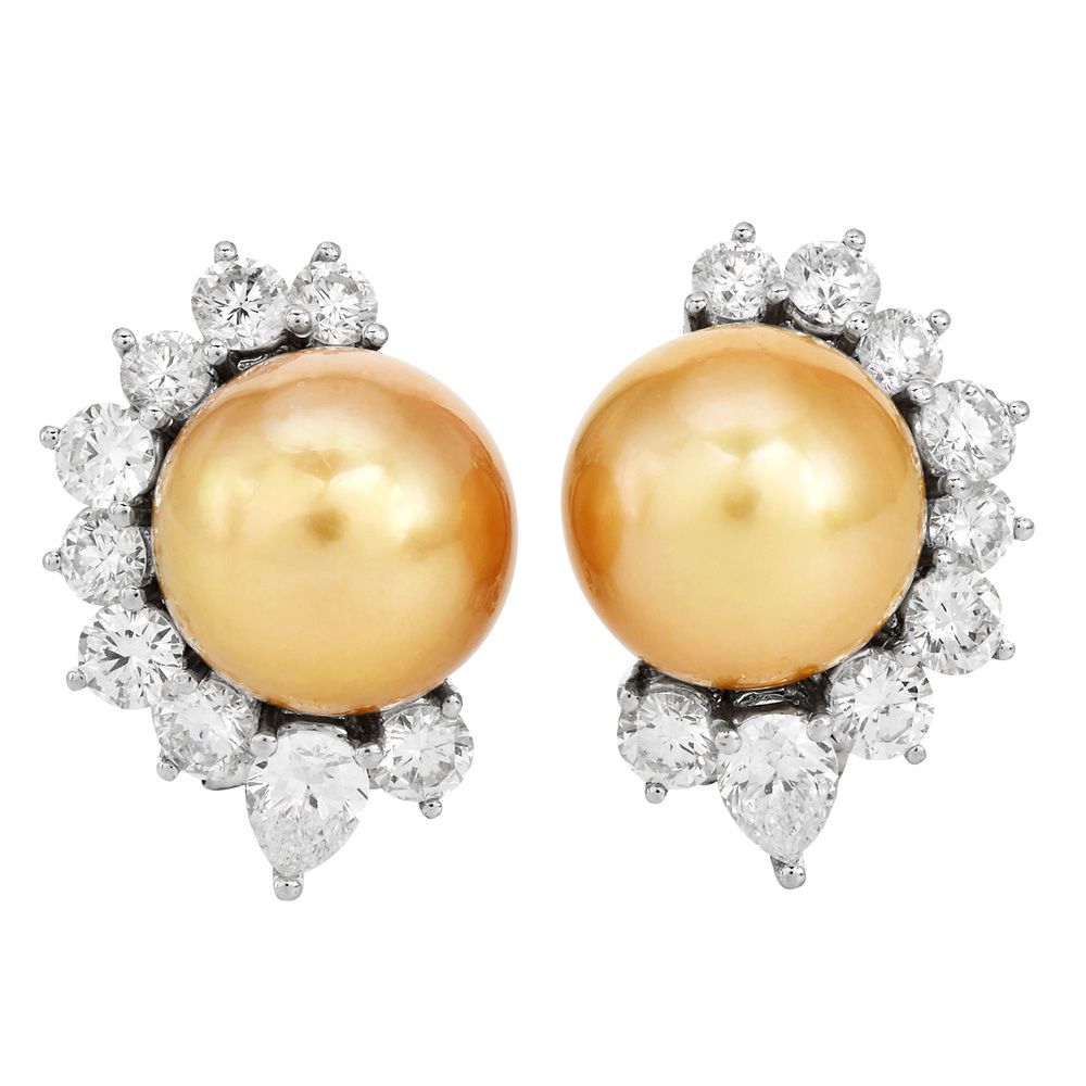 11mm Golden Southsea Pearl 18K White Gold Statement Earrings