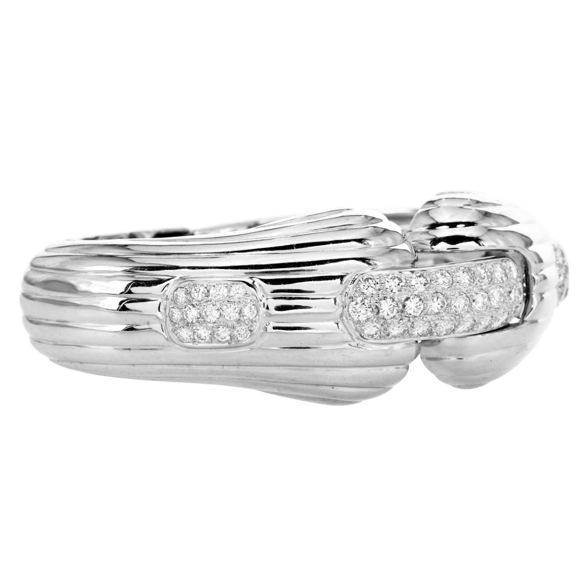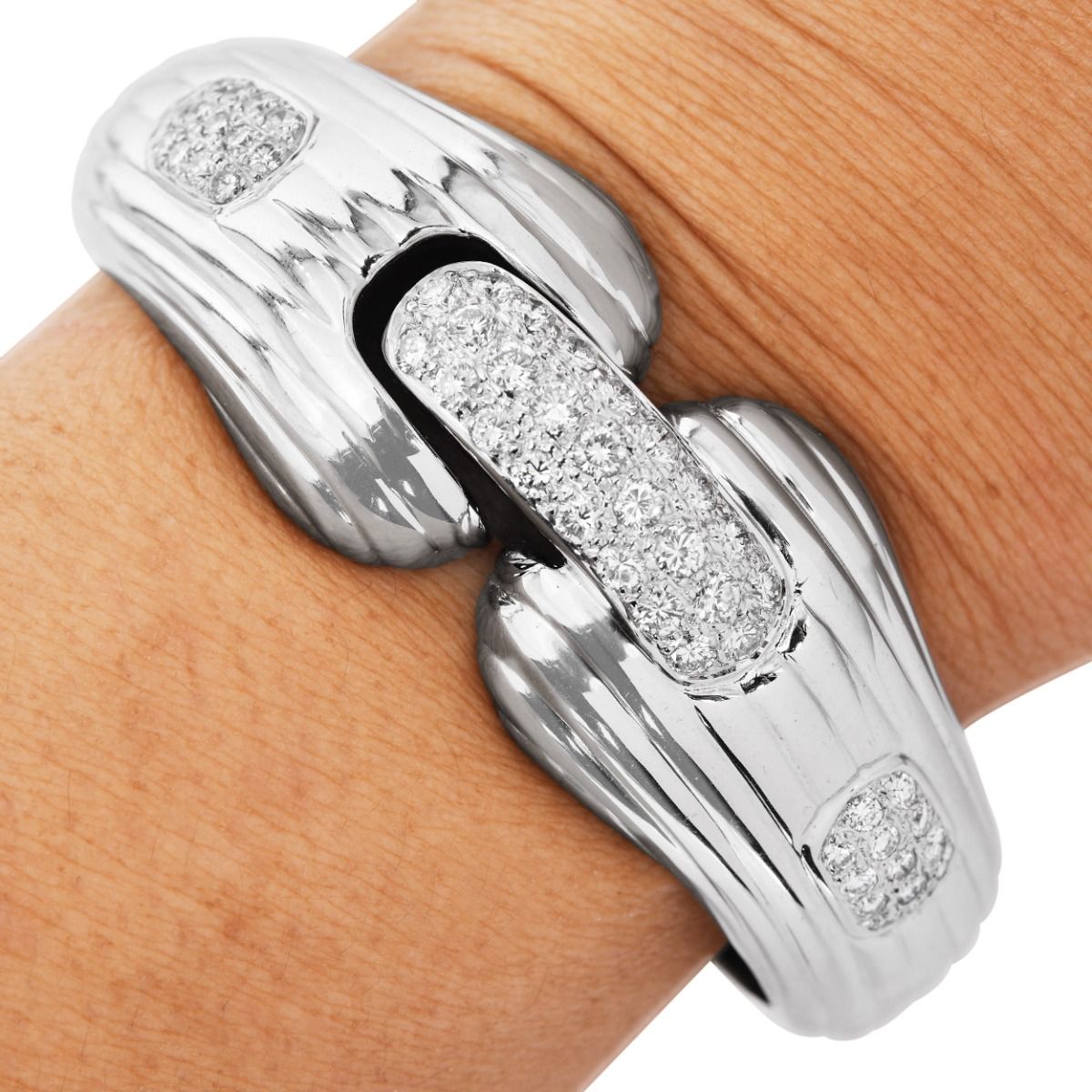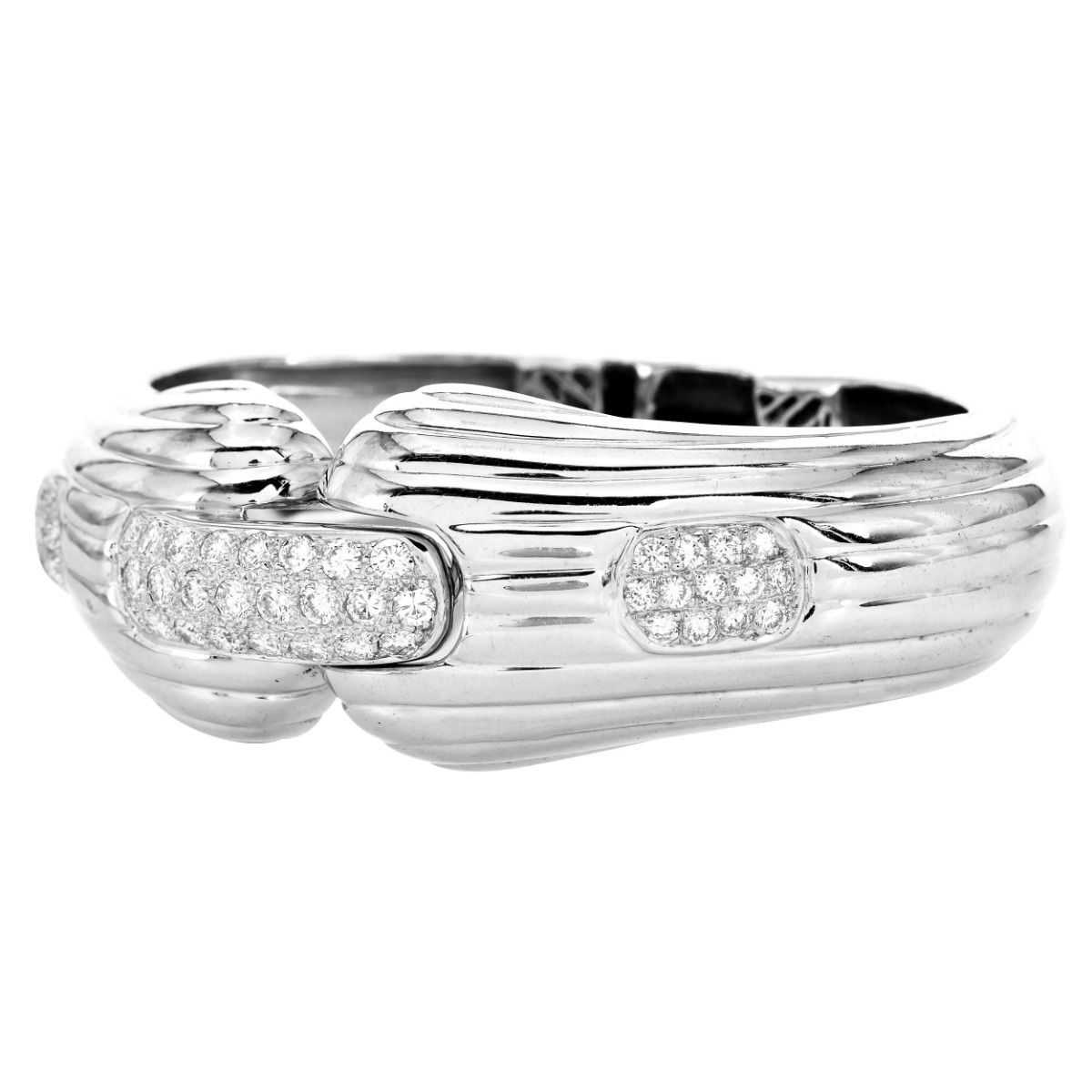 1980s 3.00cts Diamond 18K White Gold Diamond Cuff Bracelet