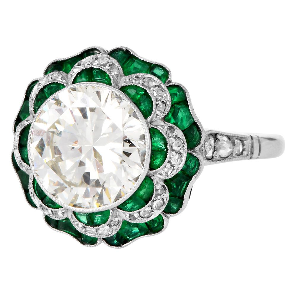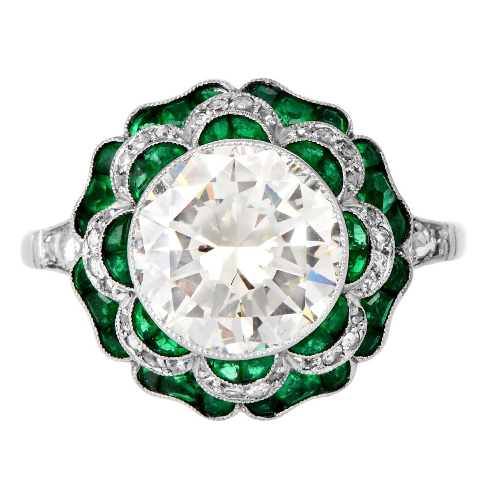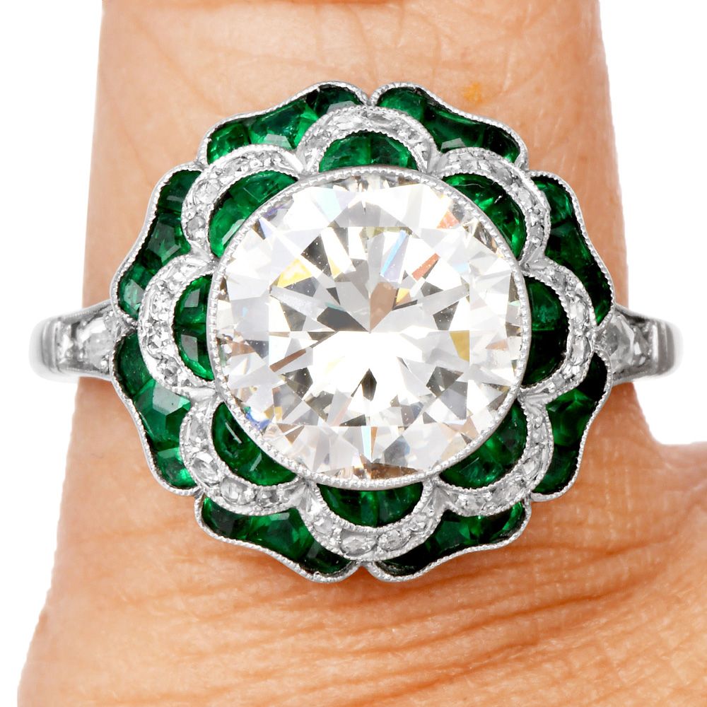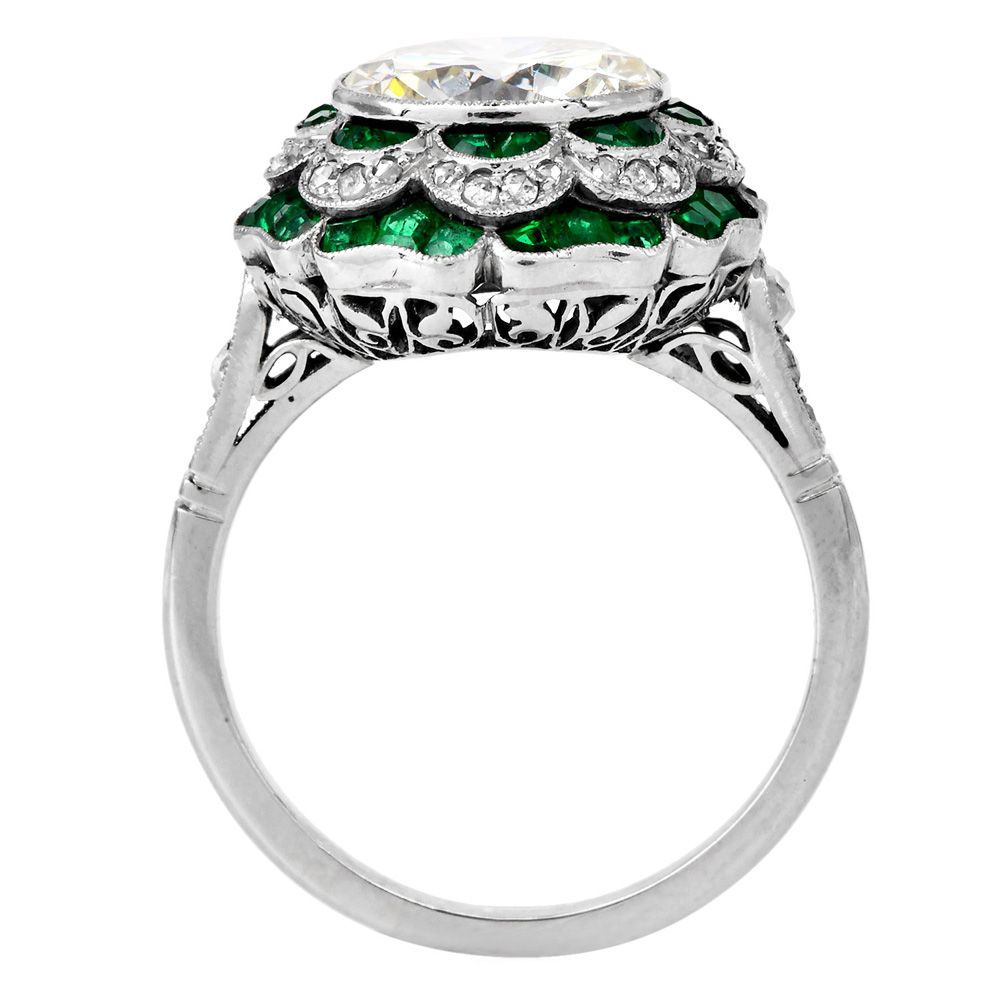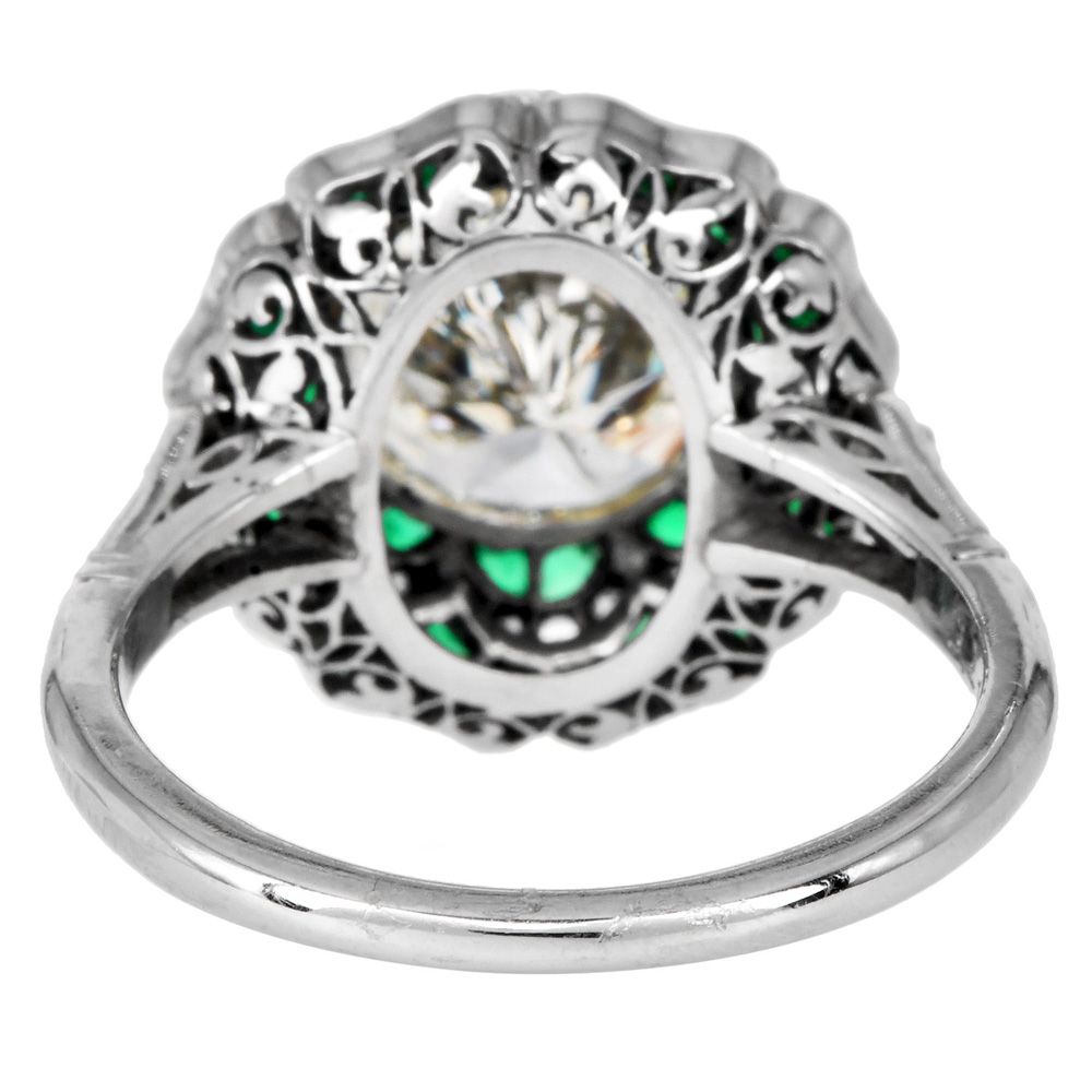 3.21 Carat Diamond & Emerald Platinum Filigree Engagement Ring