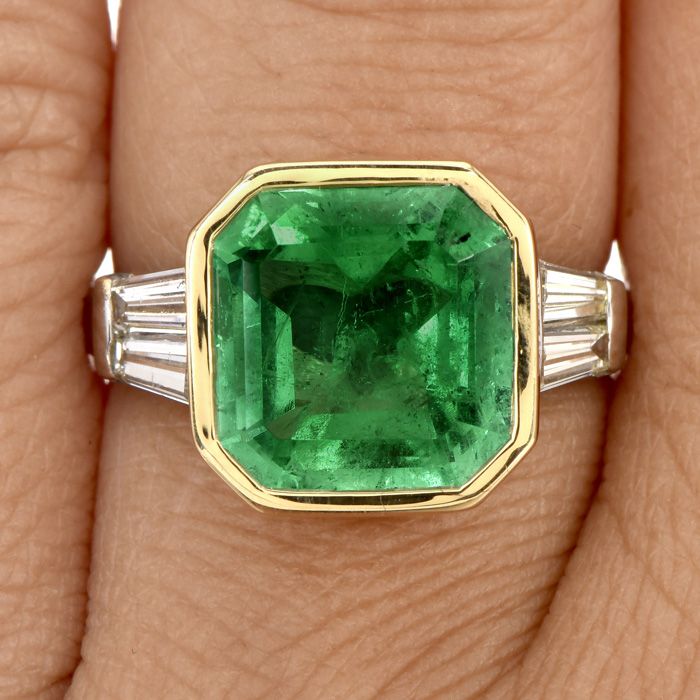 5.60ct AGL Colombian Emerald Diamond 18K Gold Ring