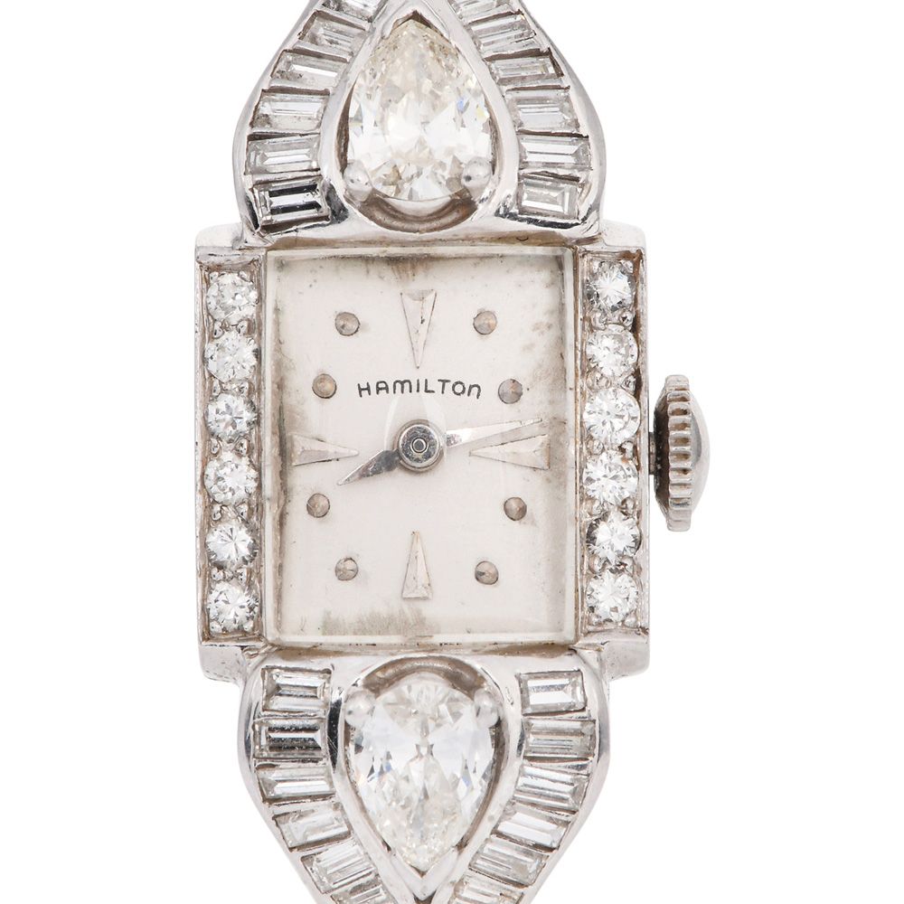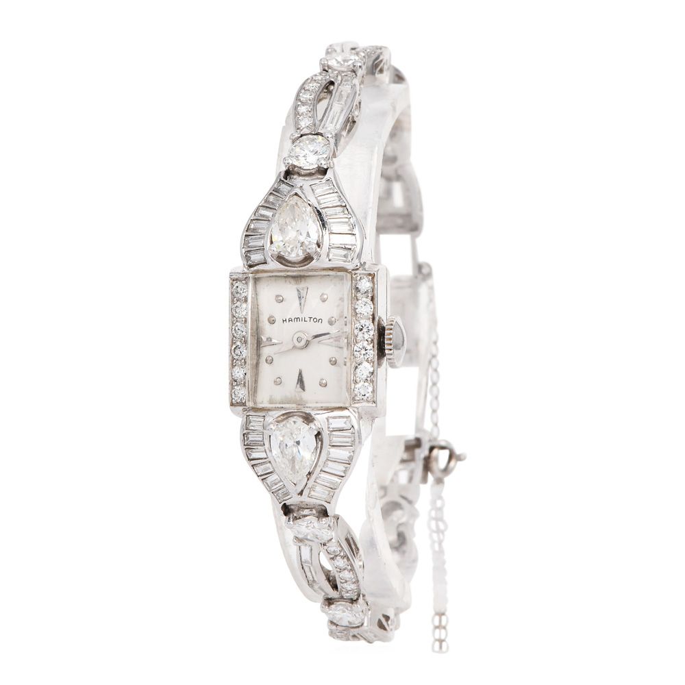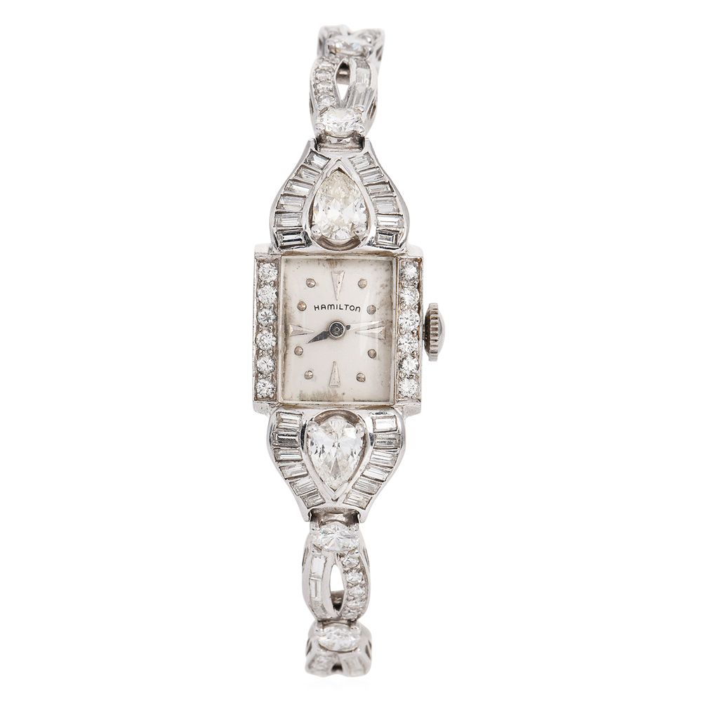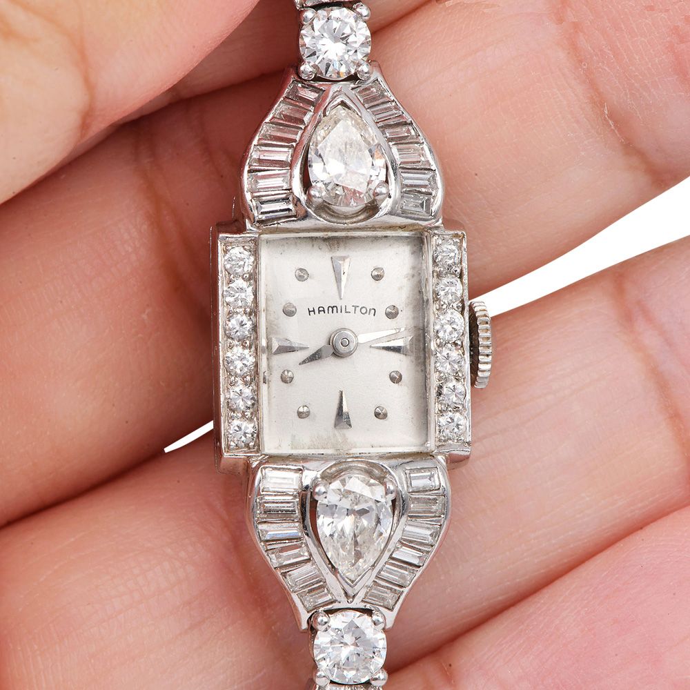 Antique Hamilton 4.80cts Diamond Platinum Ladies Cocktail Watch