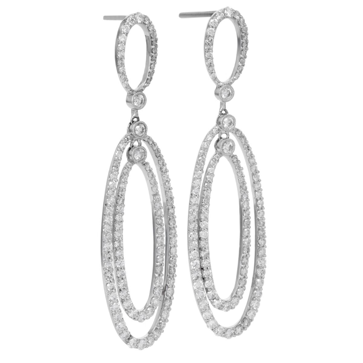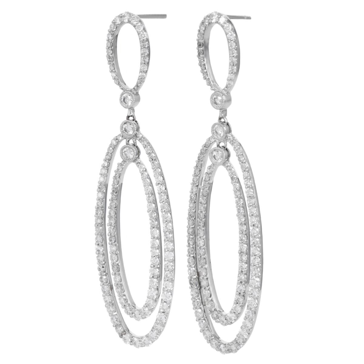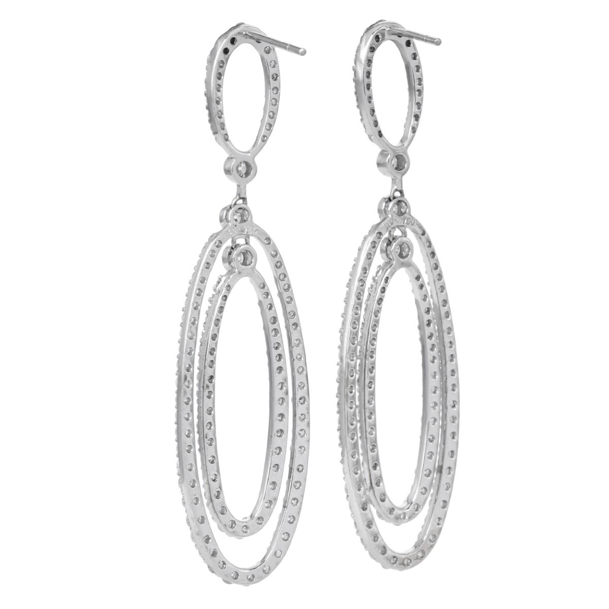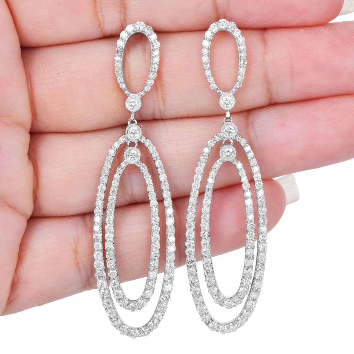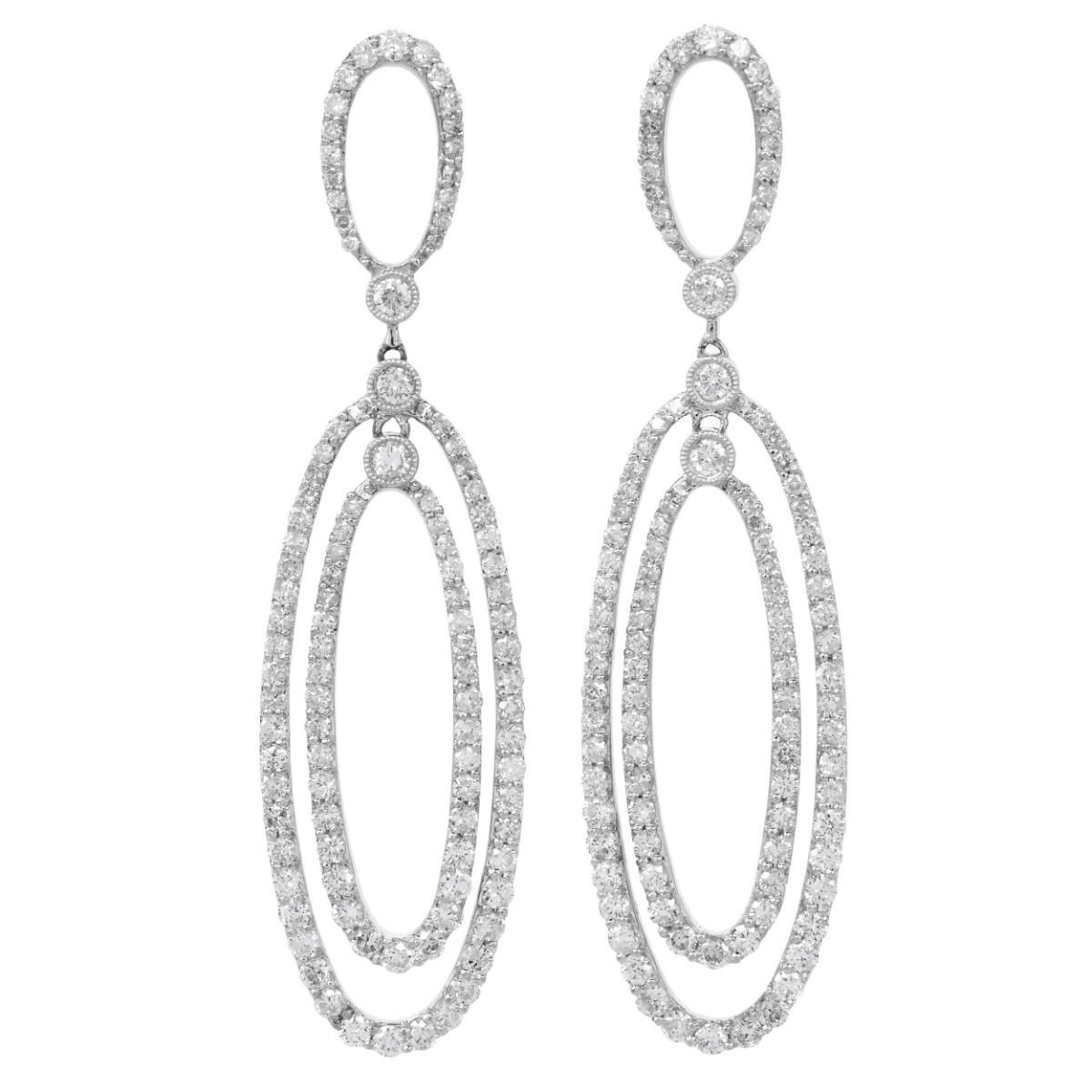 Elegant 3.40ct Diamond 18K Gold Oval Dangle Drop Earrings