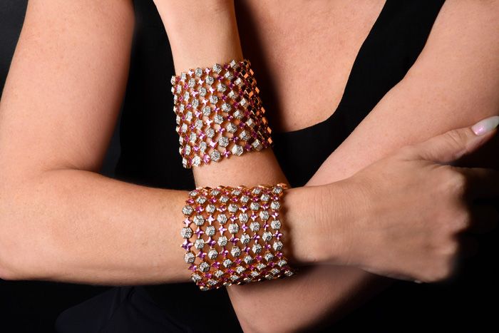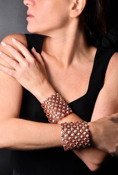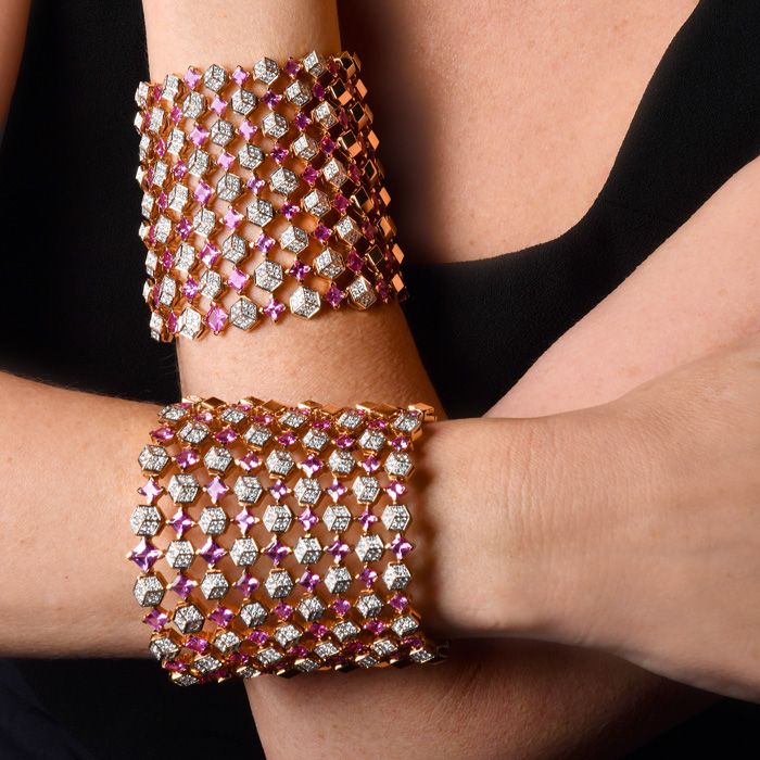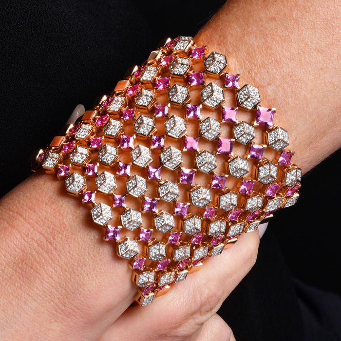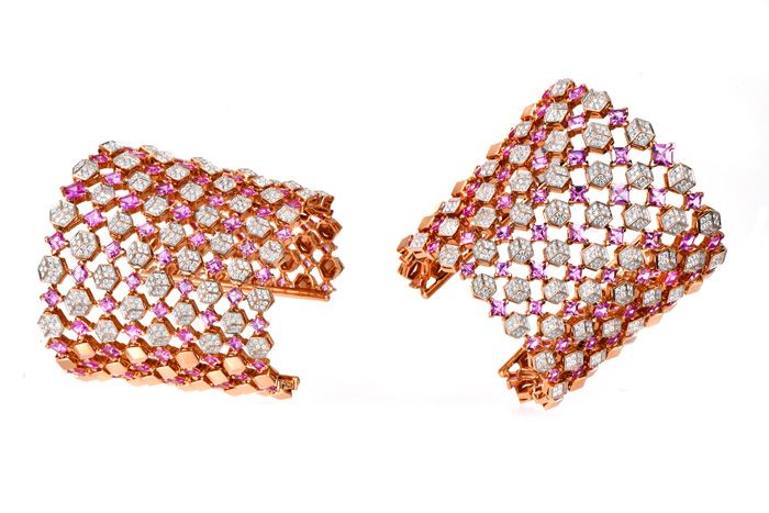 Estate Designer Paolo Costagli Sapphire Diamond 18K Pink Gold Statement Cuff Bracelet