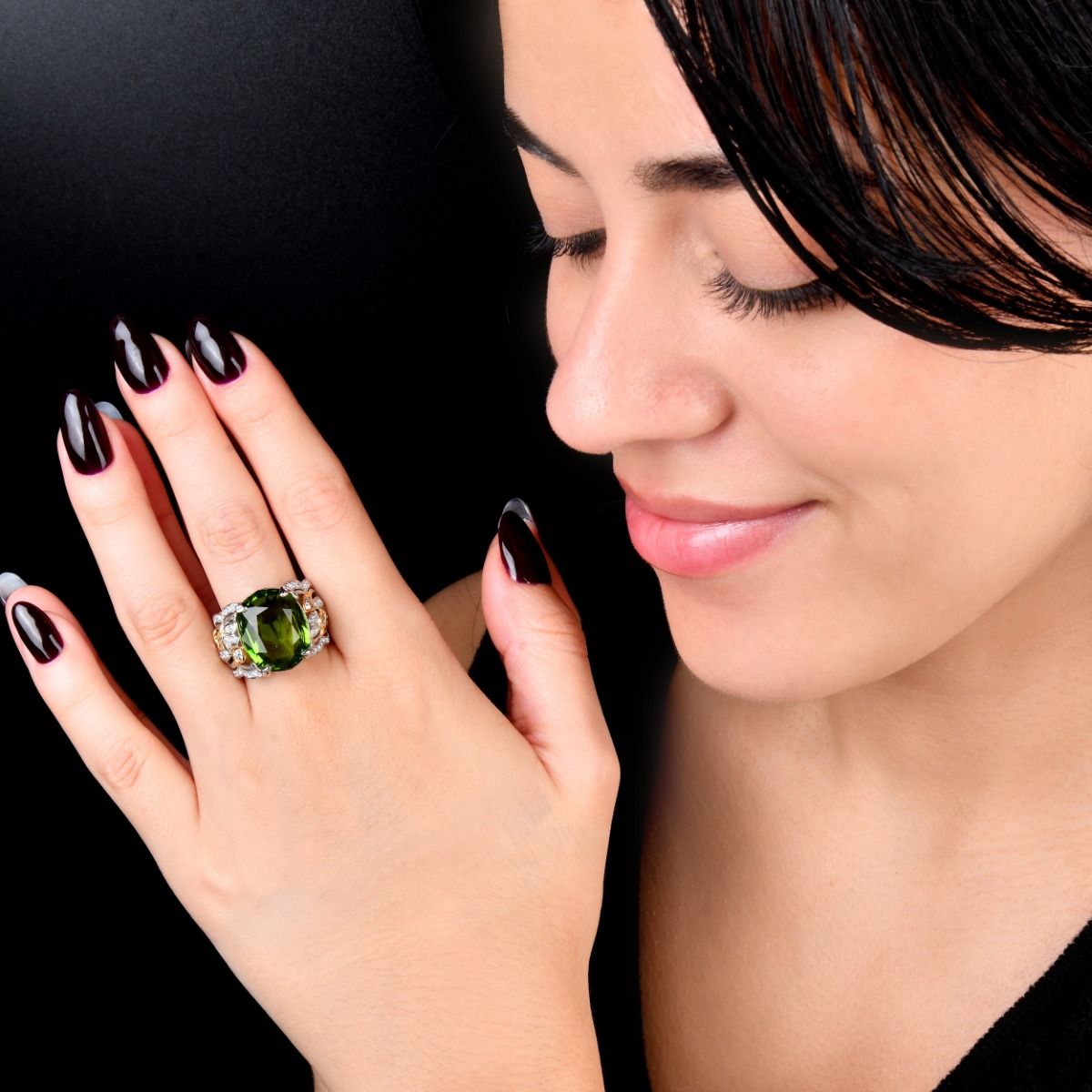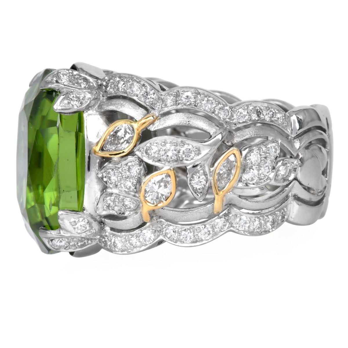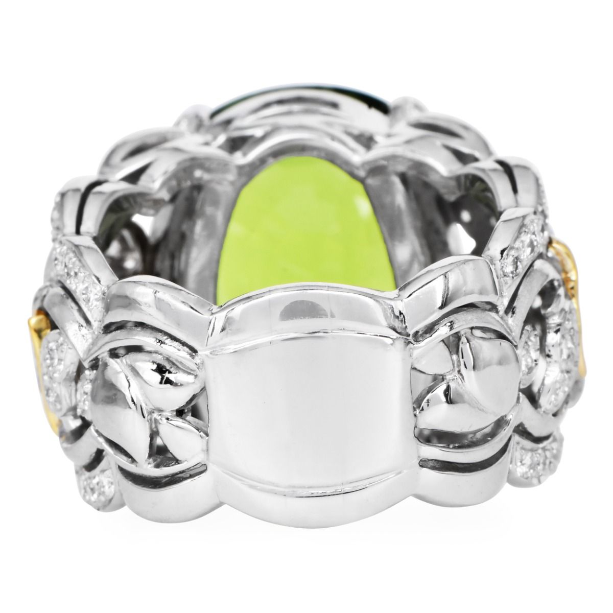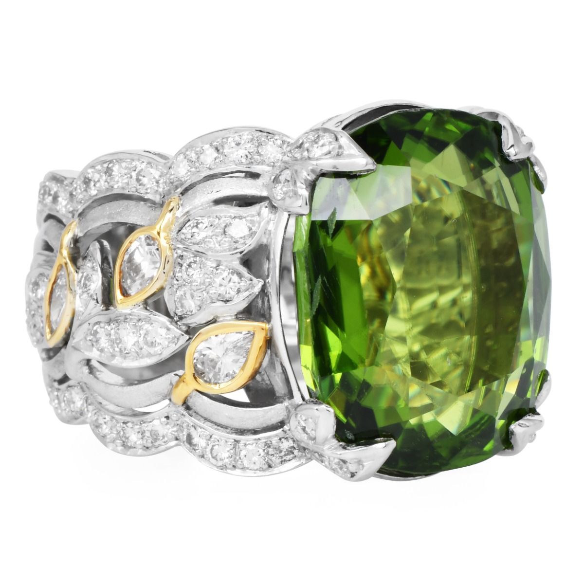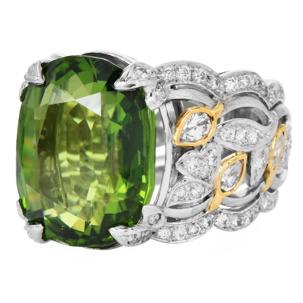 GIA 20.51ct Peridot Diamond Platinum & 18K Gold Statement Ring