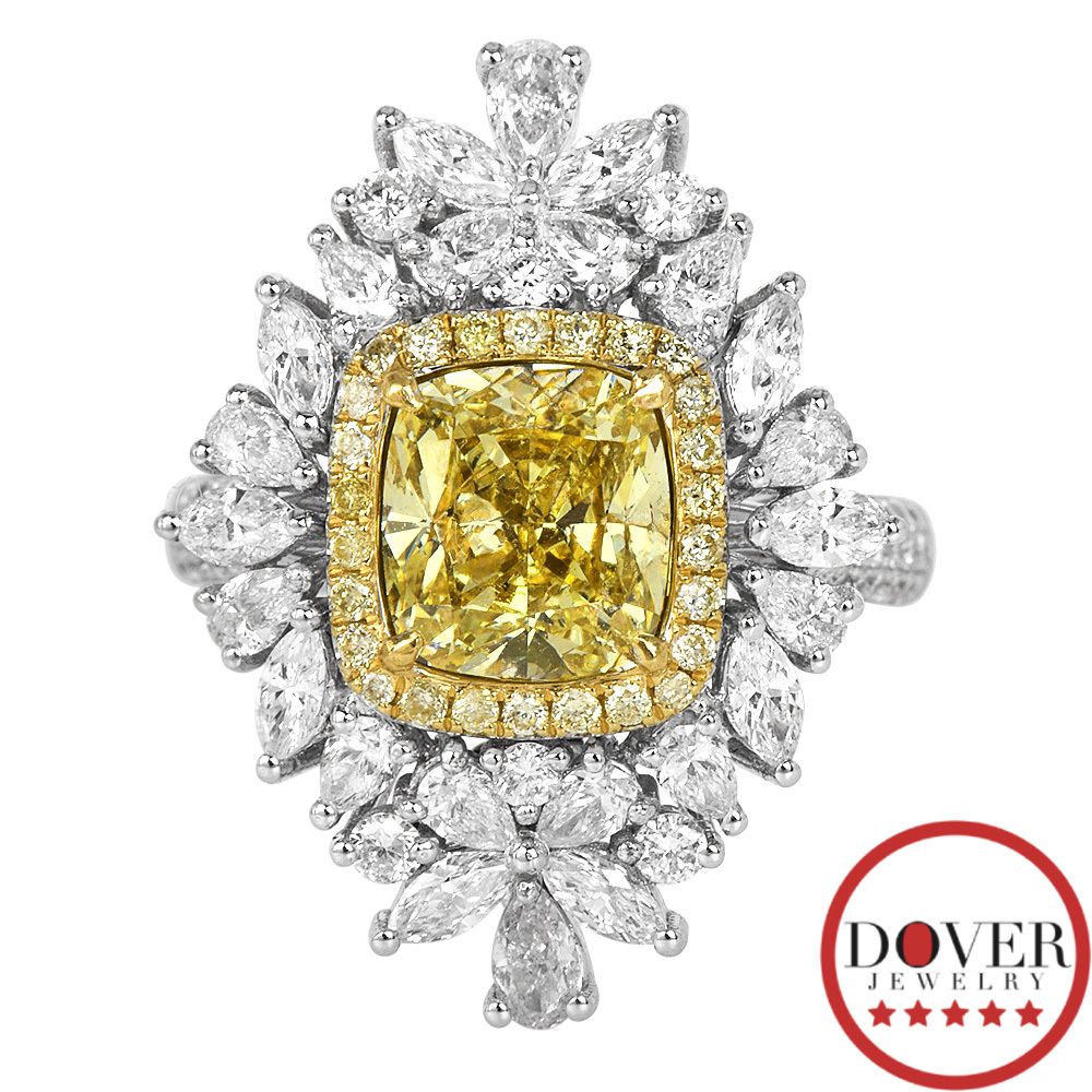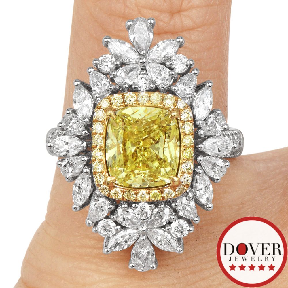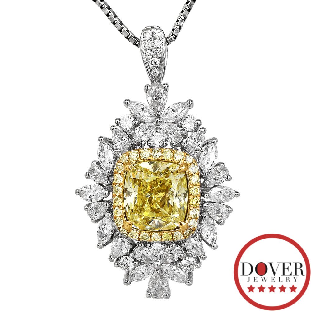 GIA 4.81ct Fancy Yellow Diamond 18K Gold Convertible Cocktail Halo Ring/Pendant