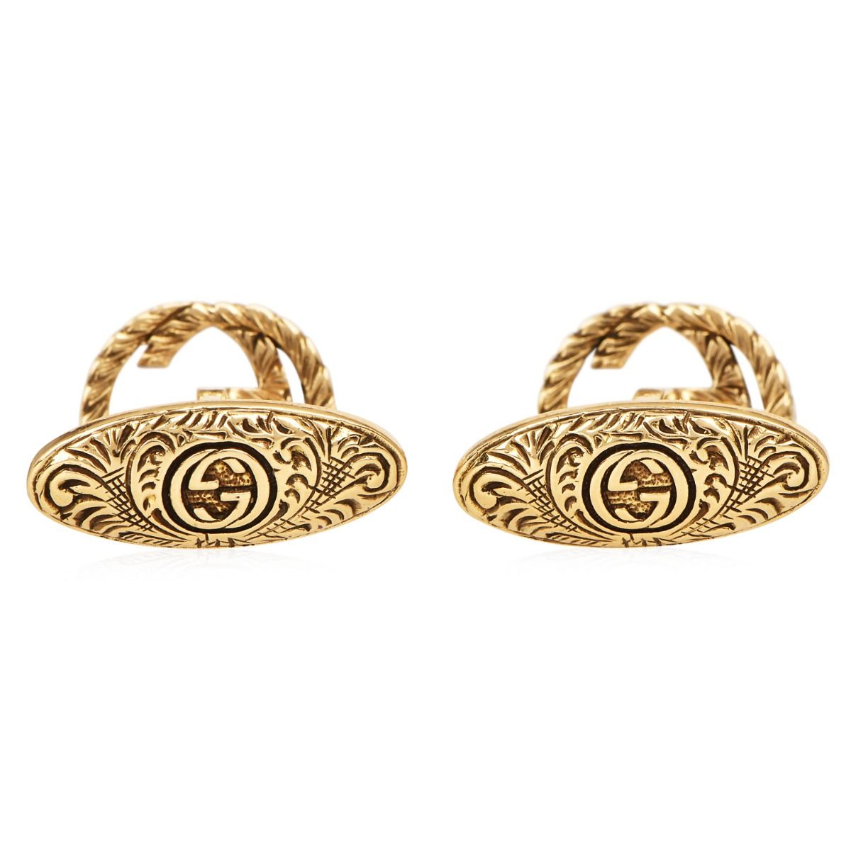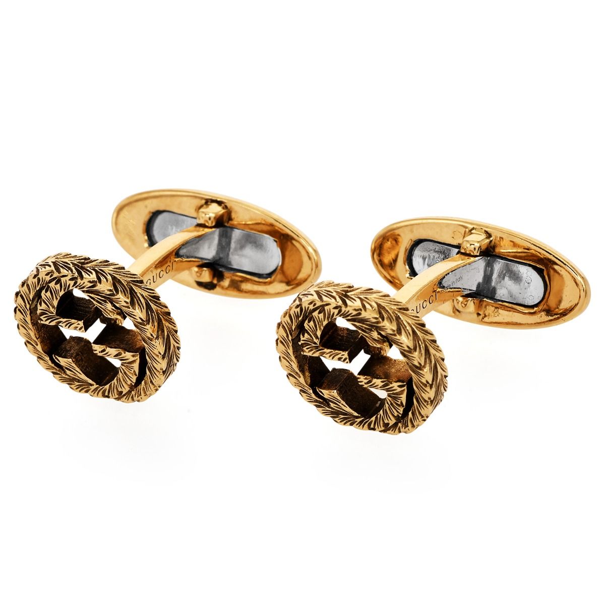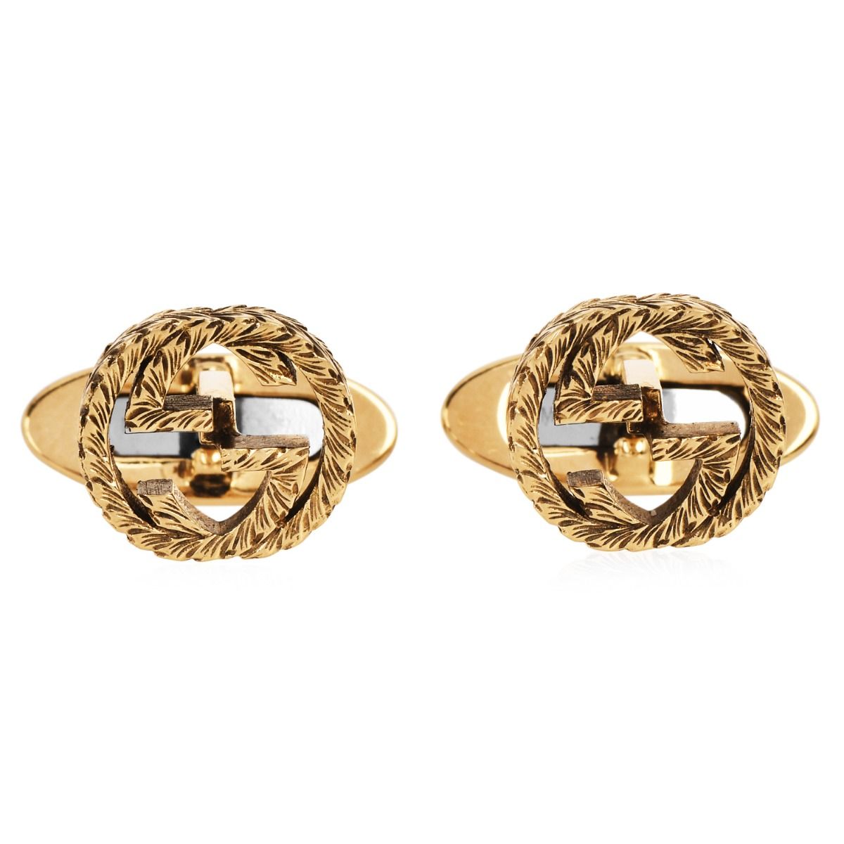 Gucci Interlocking GG 18K Yellow Gold Engraved Cufflinks