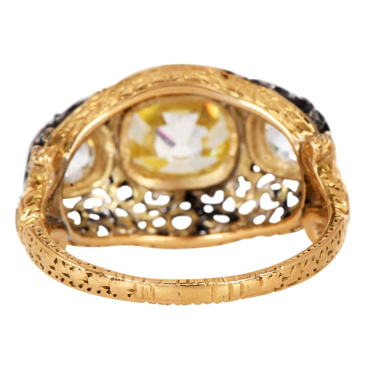 Mario Buccellati Vinatge Three-Stone Diamond 18K Gold Filigree Dome Ring