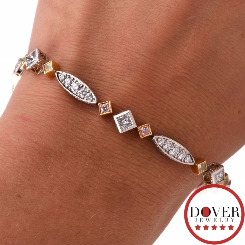 Michael Beaudry 4.30ct Pink Yellow Diamond Platinum Gold Bracelet