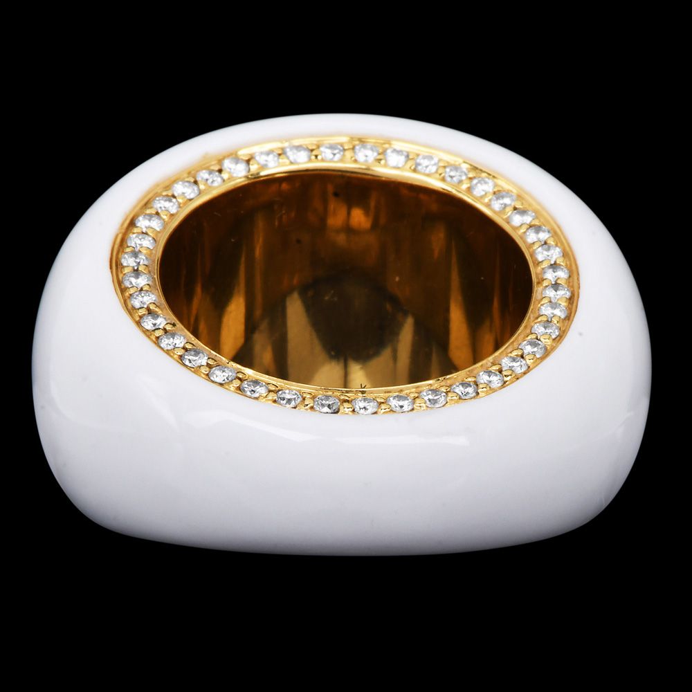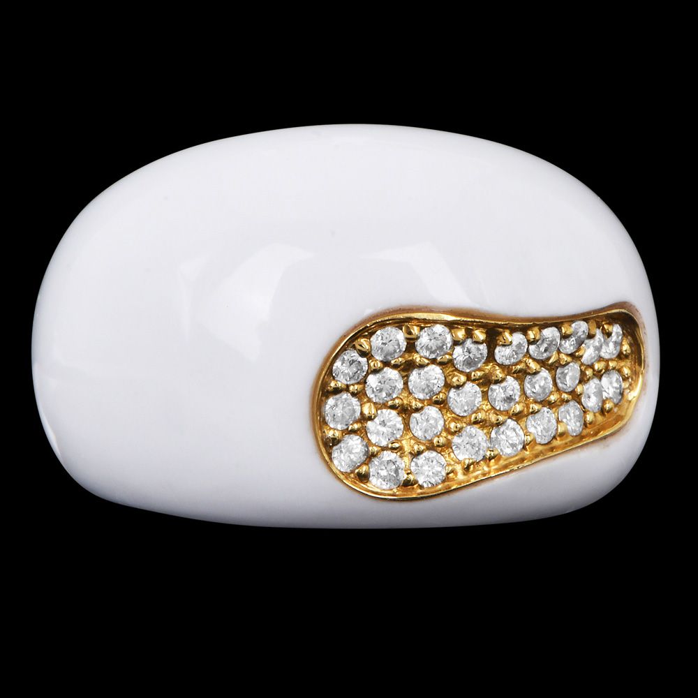 Salavetti 18K Yellow Gold White Enamel Diamond Bombé Cocktail Ring