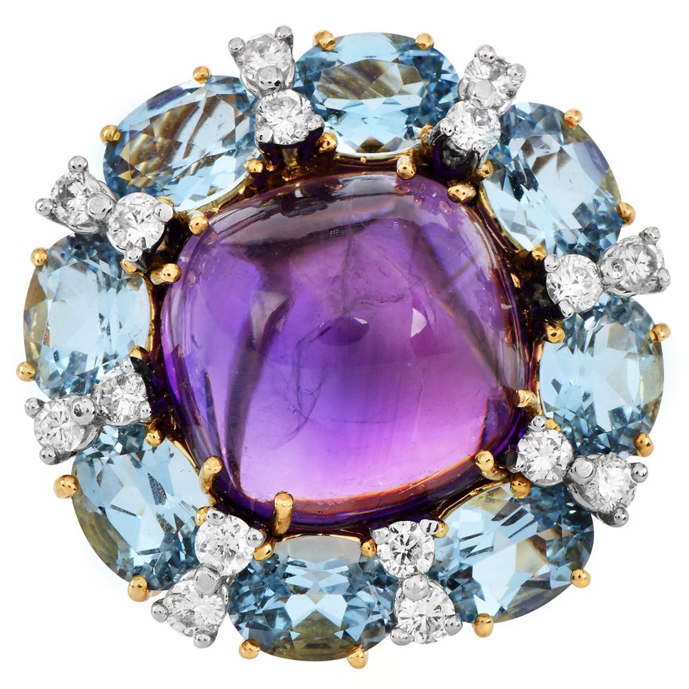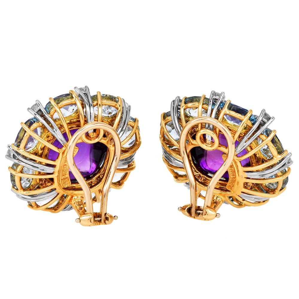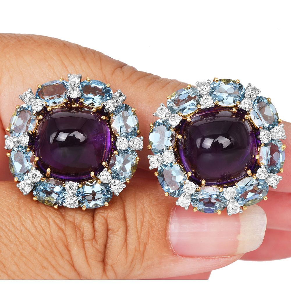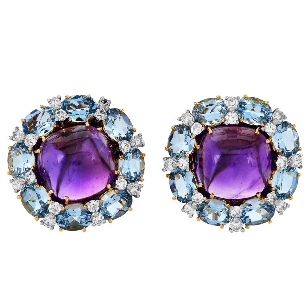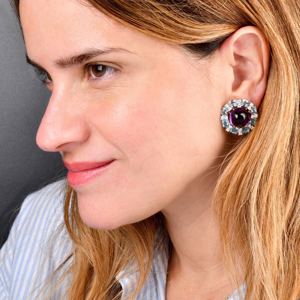Valentain Margo Amethyst, Aquamarine & Diamond Clip Earrings