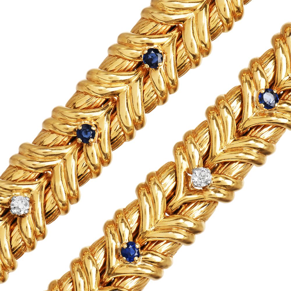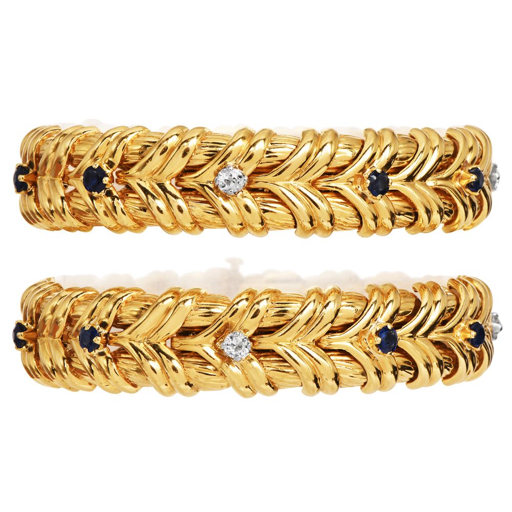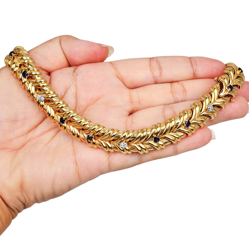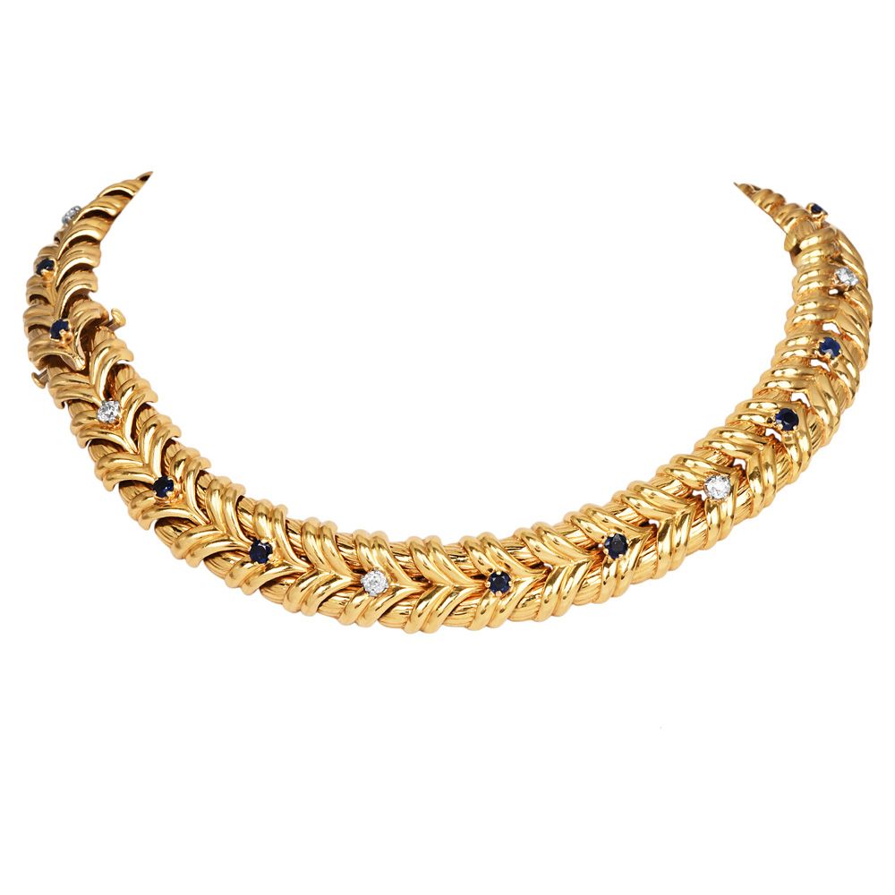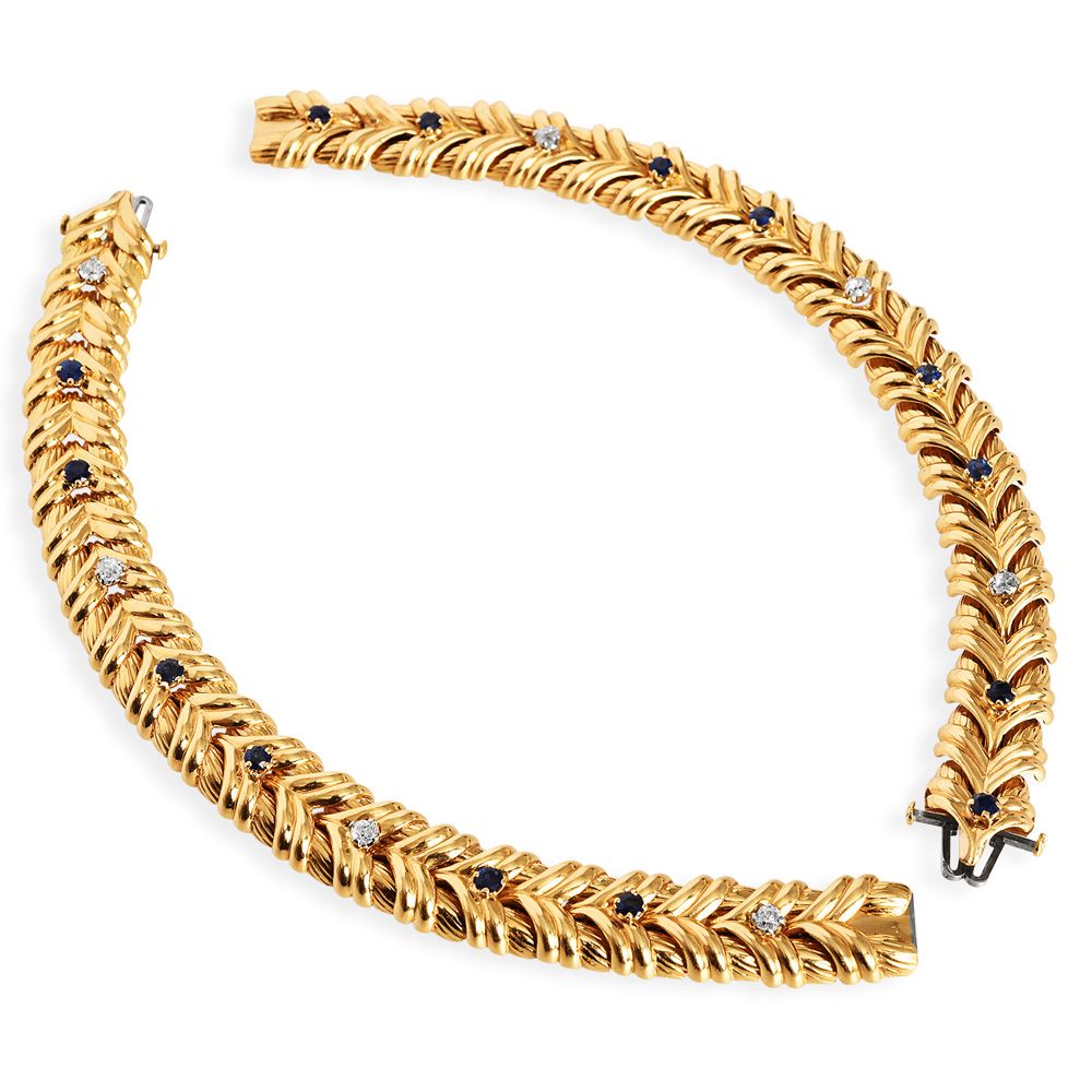 Van Cleef & Arpels VCA Sapphire Diamond Choker 18k Gold Necklace & Bracelets