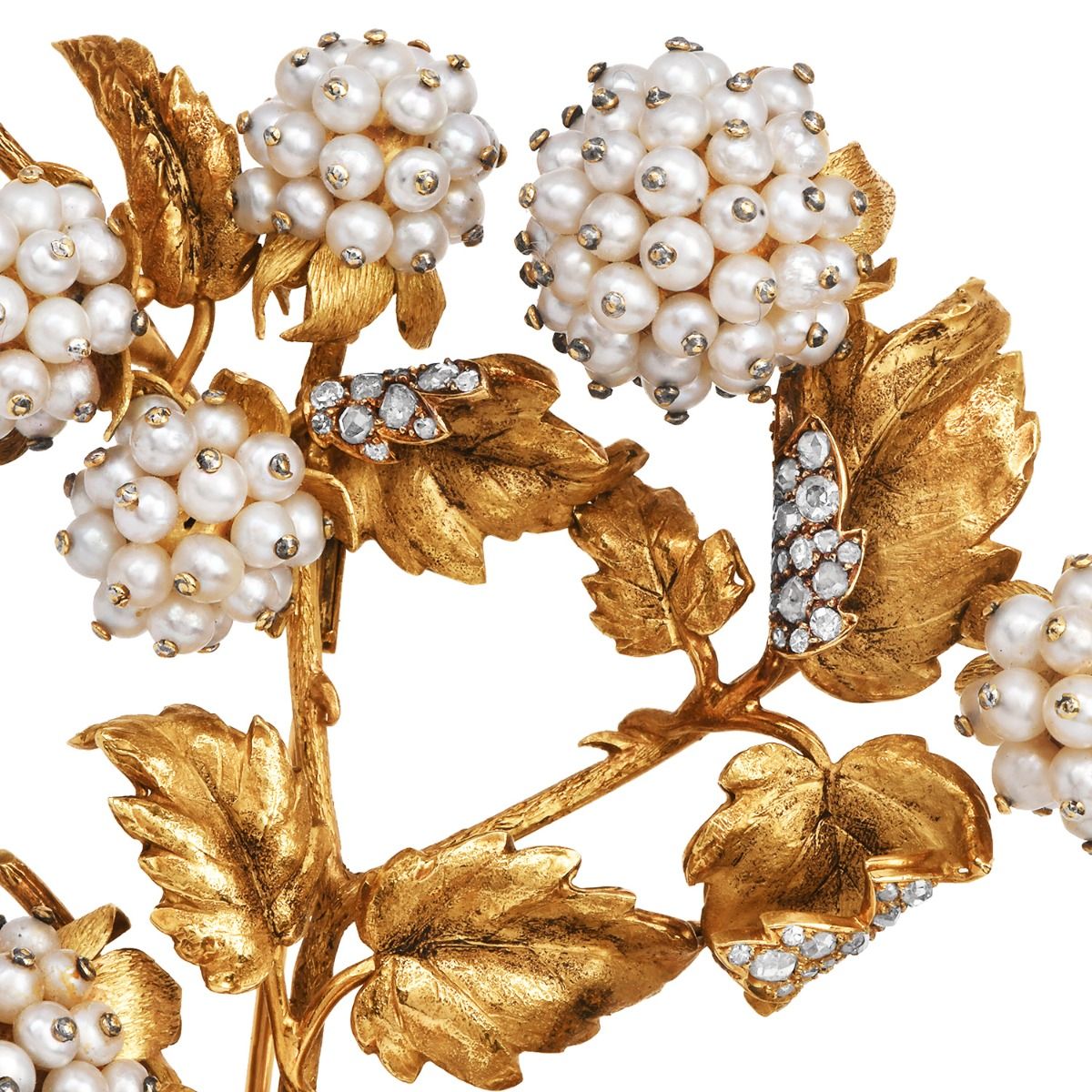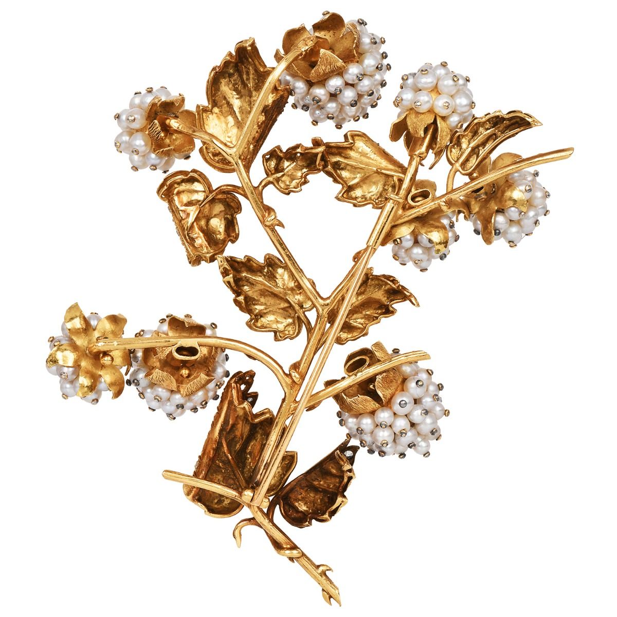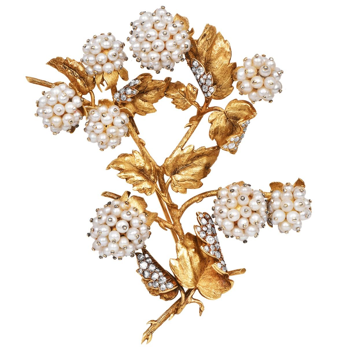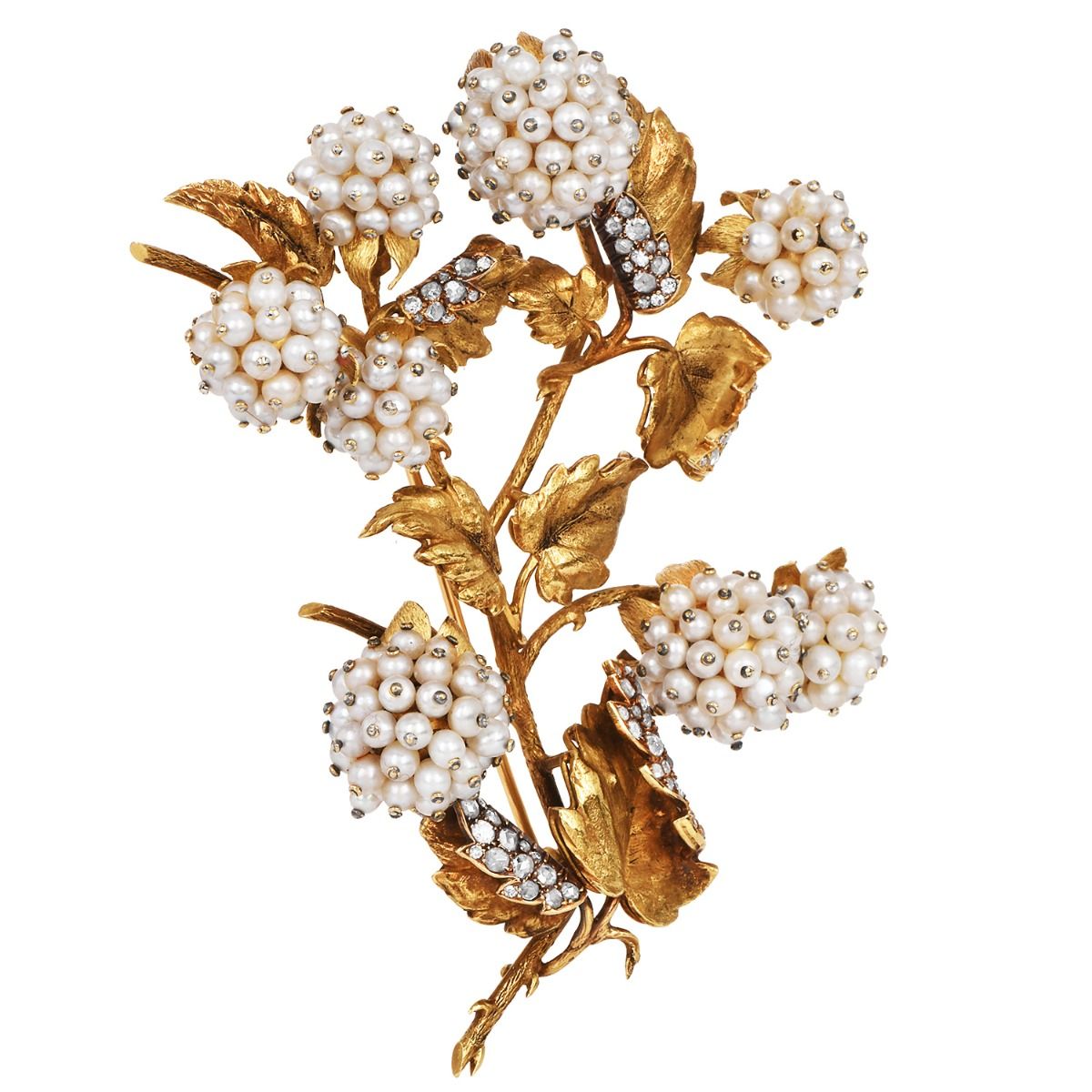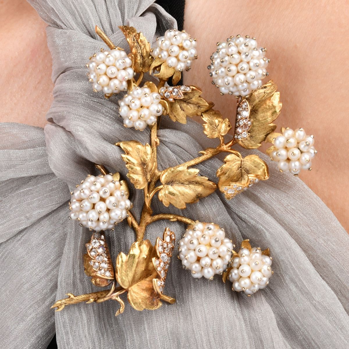 Vintage 1930s Pearl & Diamond 18K Blossom Floral Brooch