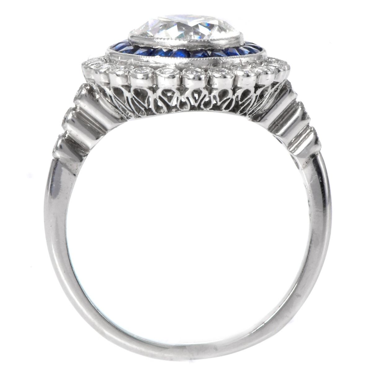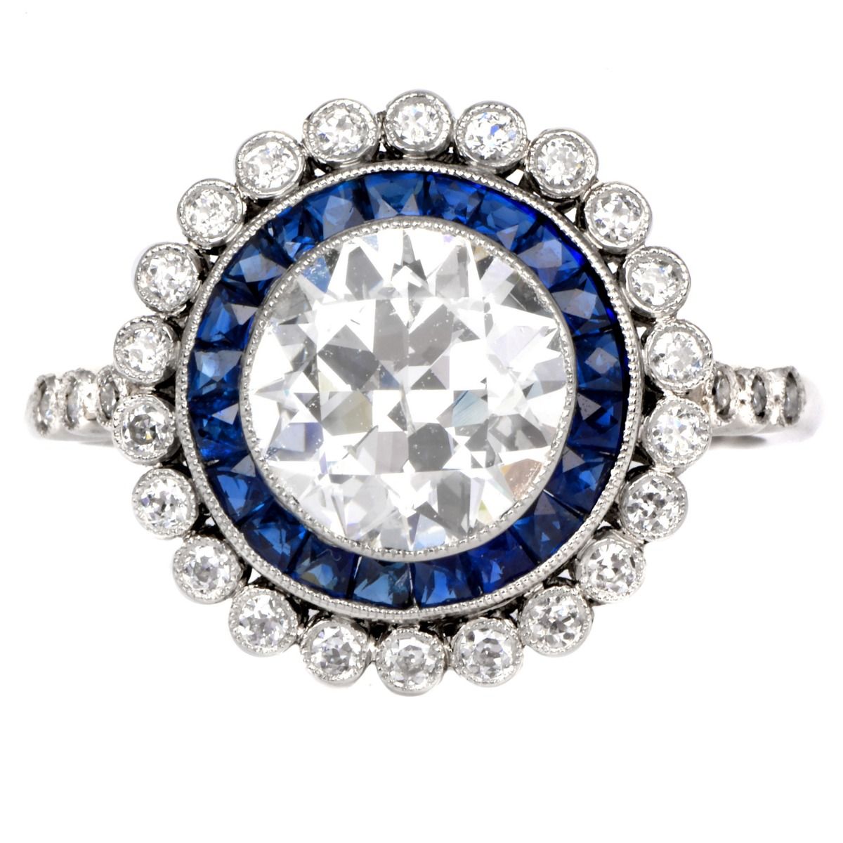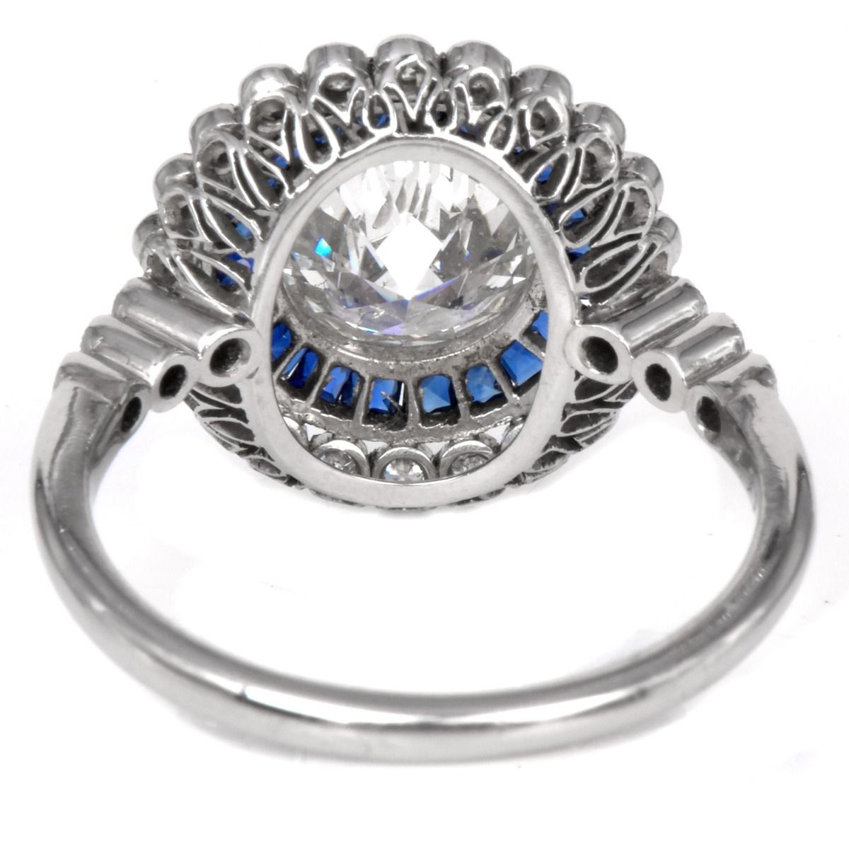 Deco Style Diamond 2.92cttw Sapphire Platinum Halo Engagement Ring