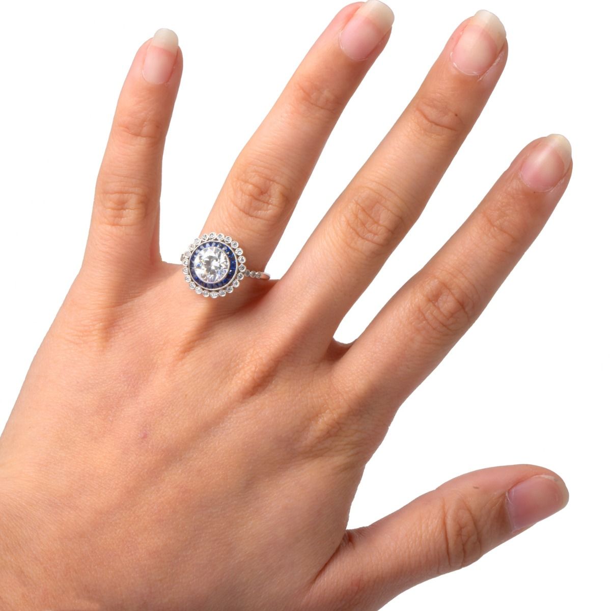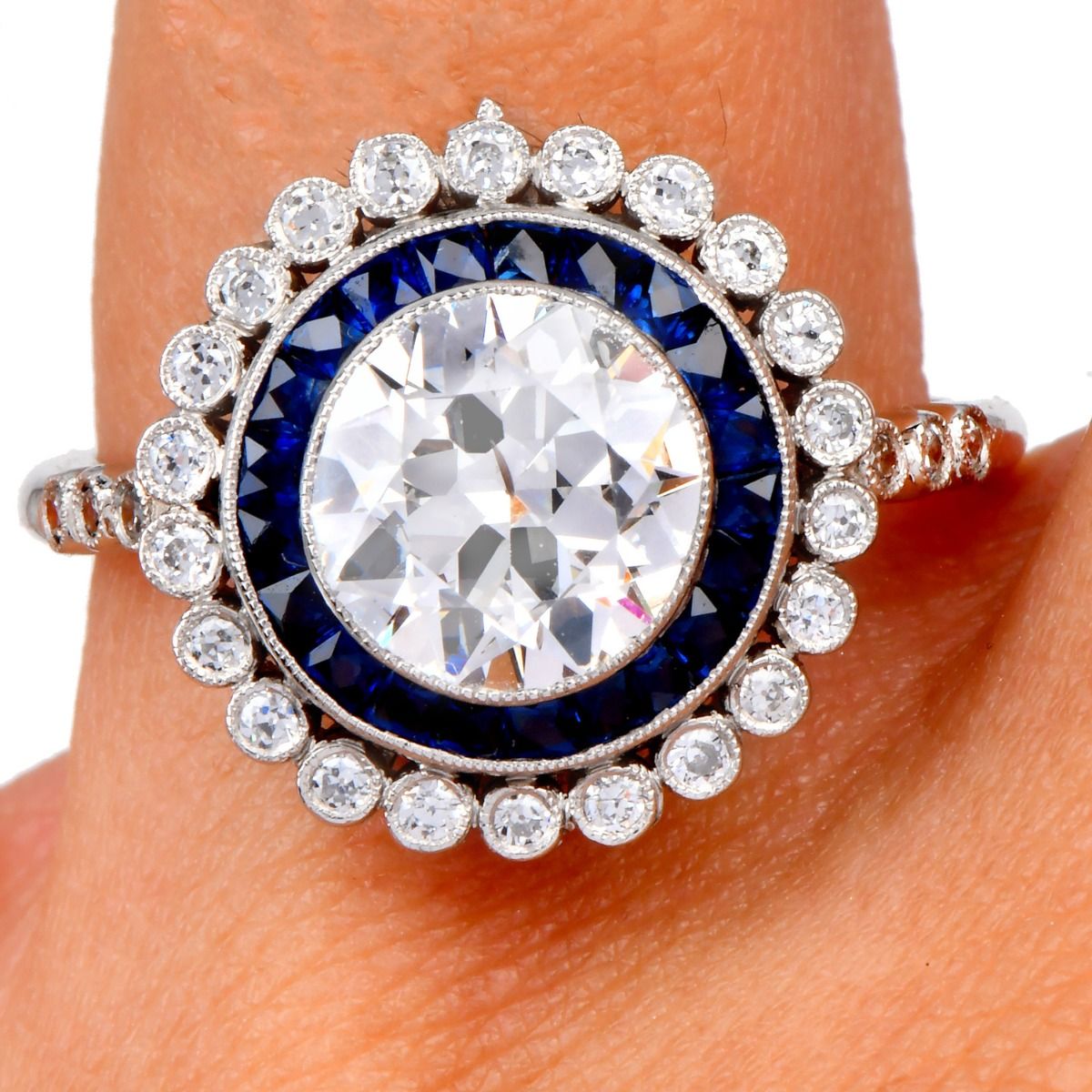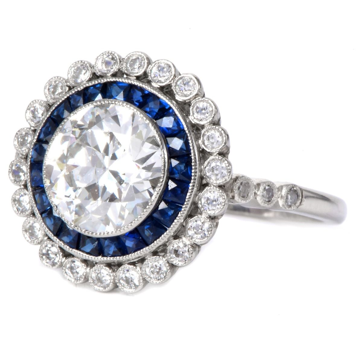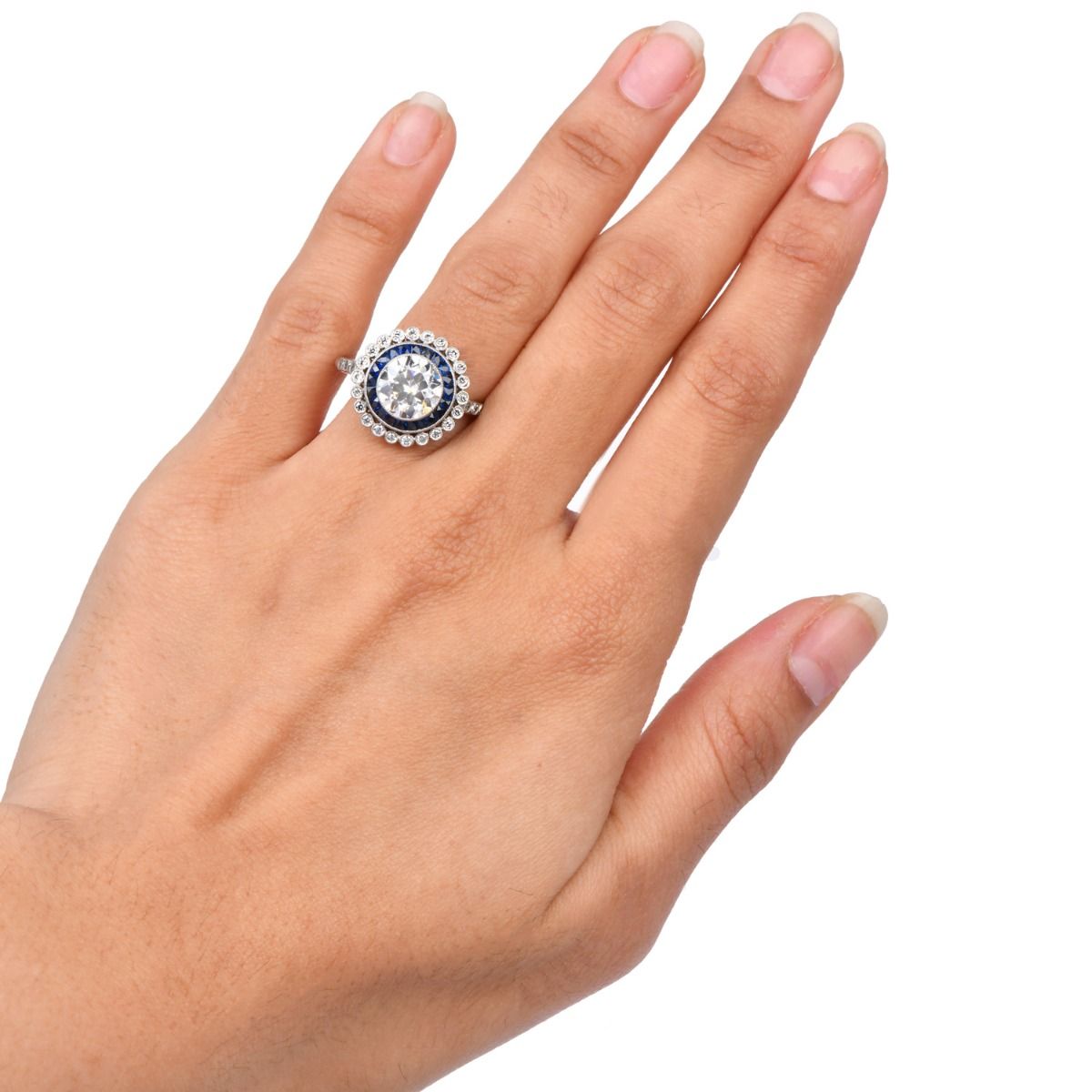 Deco Style Diamond 2.92cttw Sapphire Platinum Halo Engagement Ring