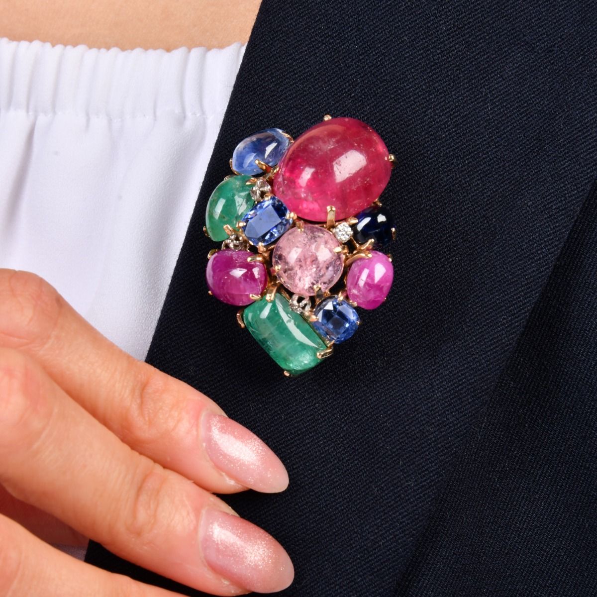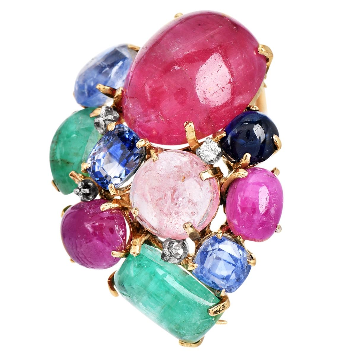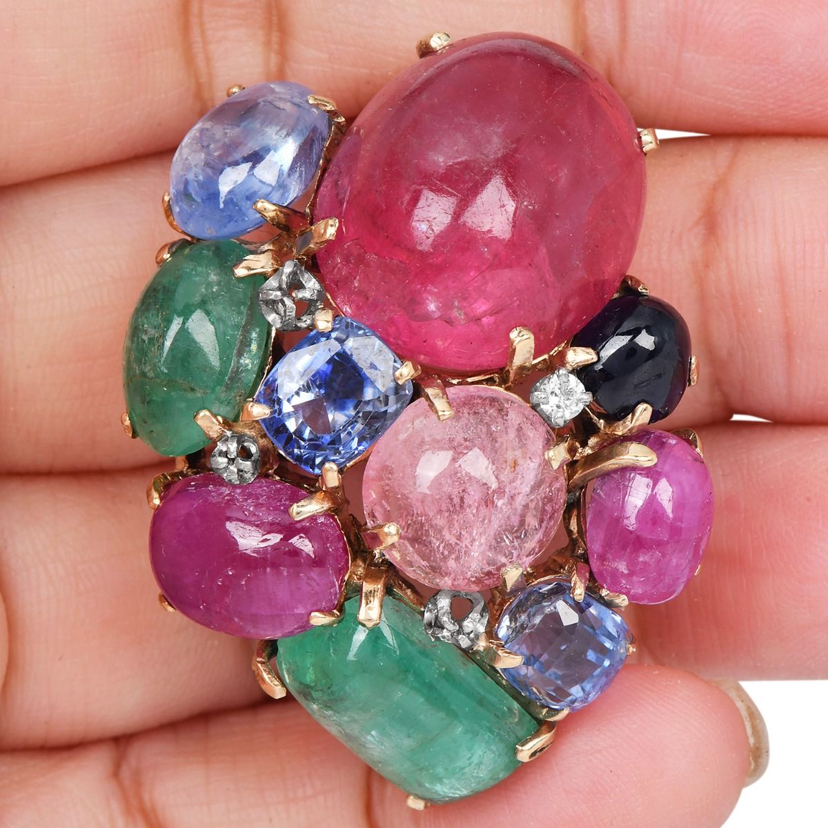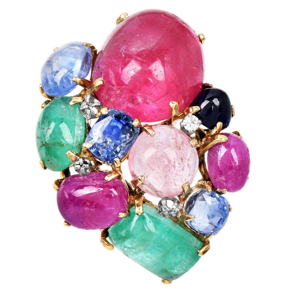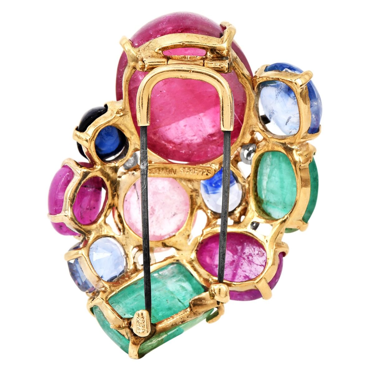 Vintage Seaman Schepps Precious Gemstone Diamond 18K Gold Cluster Brooch