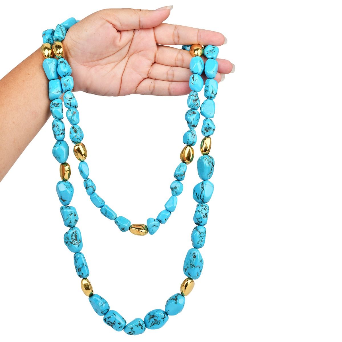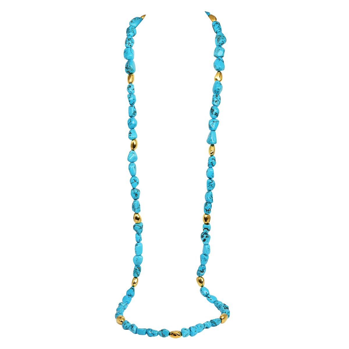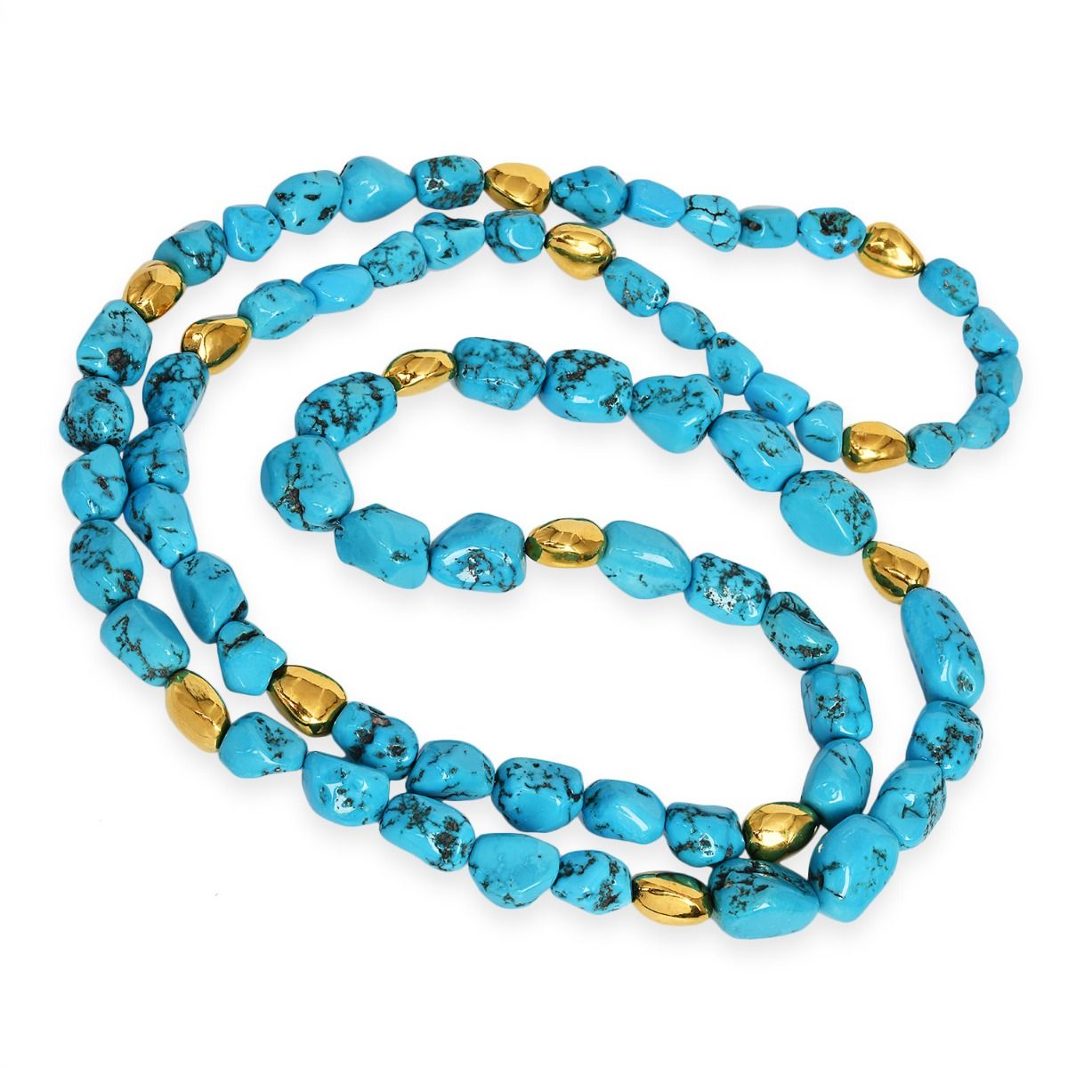Vintage Turquoise 18K Gold GIA-Bead Spacers Necklace